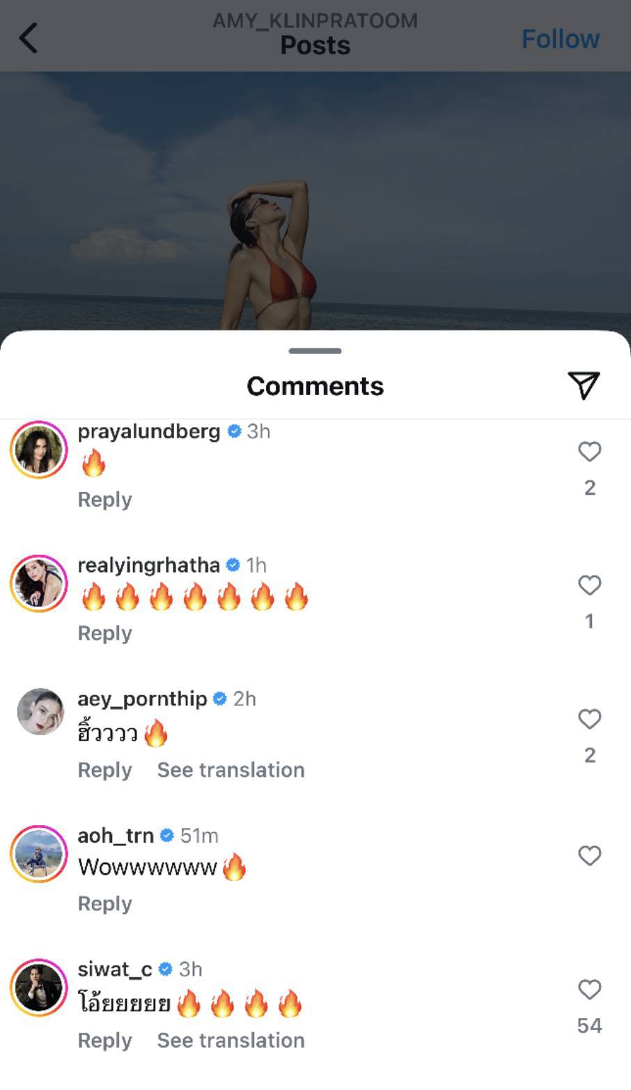 งานนี้ทำเอาเพื่อนๆ ในวงการ ต่างตะลึงกับความแซ่บ เซ็กซี่ เข้ามาเม้นท์ด้วยอิโมจิรูปไฟลุกกันแบบรัวๆ ทั้ง ปู-ไปรยา, นุ่น-วรนุช, เอ๋-พรทิพย์, ญิ๋ง-รฐา, เอมมี่-มรกต ฯลฯ แต่ก็มีแฟนคลับและชาวเน็ตบางคนที่ดูยังไงก็ไม่เชื่อว่าสาวสายปาร์ตี้วัย 40 กว่าๆ จะหุ่นดีได้ถึงเพียงนี้ และตั้งคำถามว่ารูปนี้รีทัชหรือทำศัลยกรรมมารึเปล่า? ในขณะที่รูปเซ็ทนี้แหล่งข่าวบอกว่าทำเอาคุณสามีสุดหล่อ "ซี-ศิวัฒน์" ถึงกับอึ้ง ทึ่ง เสียว เพราะไม่เคยเห็นรูปเซ็ทนี้มาก่อนเลย จนซีต้องเข้ามาเม้นท์ร้อง "โอ้ยยยยย" พร้อมอิโมจิรูปไฟลุกถึงสี่อันเลยทีเดียว