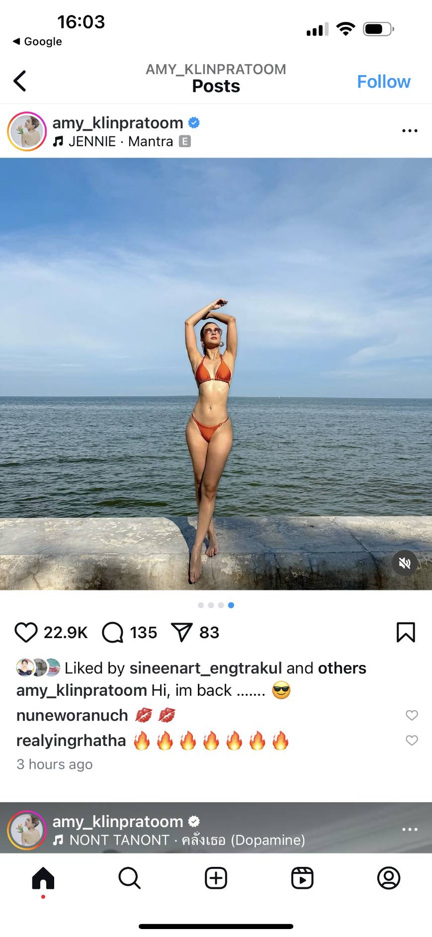 ถึงกับร้องว้าว! เพราะเจ้าแม่สายปาร์ตี้สุดแซ่บ "เอมี่ กลิ่นประทุม" ที่มักจะโพสท์ IG ด้วยภาพเฮฮาปาร์ตี้และเมนูของกินแสนอร่อย ลงภาพอวดหุ่นโชว์เอวเอสในชุดว่ายน้ำแบบทูพีซด้วยท่าโพสท์สุดเซ็กซี่โดยมีน้ำทะเลเป็นแบ็คกราวด์ โดยเจ้าตัวได้เขียนแคปชั่นว่า "Hi, im back..."