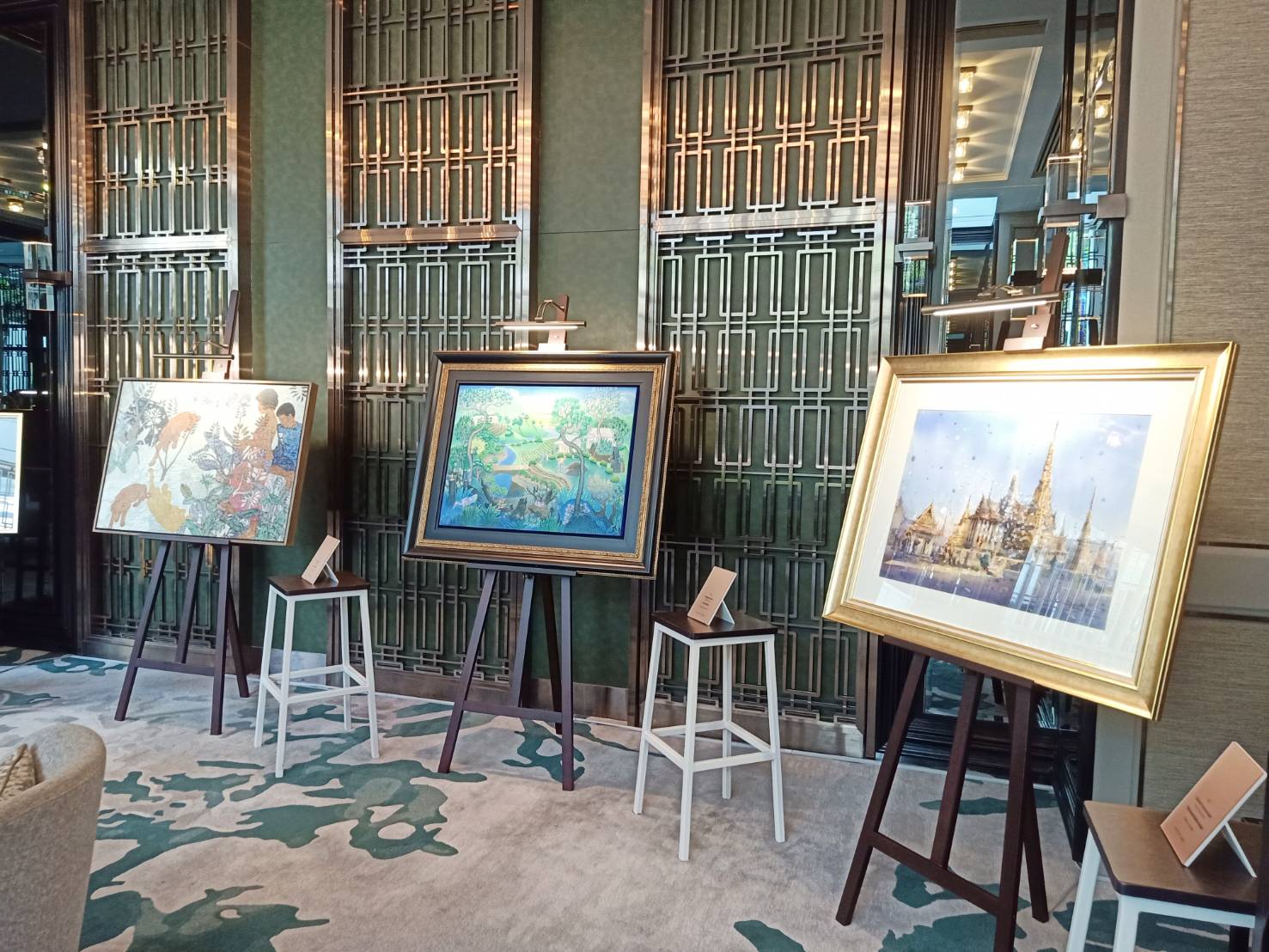 ในส่วนของ Foyer โดดเด่นด้วยผลงานชิ้นเอกสองชิ้นจากศิลปินชาวไทยชื่อดัง สนั่น รัตนะ และ เริงศักดิ์ บุณยวาณิชย์กุล ตรงกลางมีโต๊ะประดับด้วยบทกวีไทยและฝรั่งเศส 40 บท สร้างสรรค์การผสมผสานที่น่าประทับใจระหว่างภาพและวรรณกรรม ส่วน Atelier จัดแสดงภาพวาดที่มีชีวิตชีวาอีกสี่ภาพ แต่ละภาพสะท้อนถึงแก่นแท้ของวิถีชีวิต มรดก และประวัติศาสตร์ไทยในรูปแบบต่าง ๆ เช่น อะคริลิก น้ำมัน และสีน้ำ นำเสนอในบรรยากาศสตูดิโอที่เป็นกันเอง จากนั้น Celestial paths จะนำผู้ชมไปตามทางเดินที่กระตุ้นประสาทสัมผัส ผ่านภาพวาดอันน่าหลงใหลหกภาพ ซึ่งเปรียบเสมือนหน้าต่างสู่การตีความส่วนบุคคล ประสบการณ์อันน่าประทับใจนี้ครอบคลุมสองชั้นและโถงลิฟต์ของโรงแรม เพื่อเป็นรางวัลแก่แขกผู้เข้าพักที่เสร็จสิ้นการเดินทางแห่งการค้นพบ จะมีผลงานลับซึ่งเป็นผลงานที่เขียนด้วยลายมือของกวีที่ได้รับการยกย่องมากที่สุดคนหนึ่งของไทยรออยู่ ณ จุดสิ้นสุดของนิทรรศการ