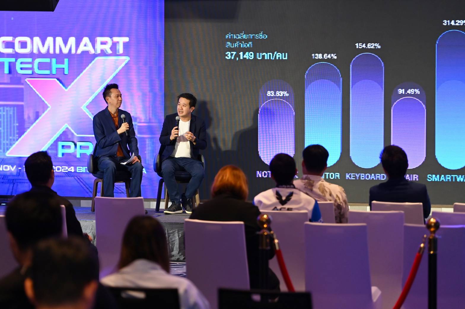 นายบุญเลิศ นราไท ประธานเจ้าหน้าที่บริหาร บมจ. เออาร์ไอพี กล่าวว่า "จากสถานการณ์การจัดส่ง PC ทั่วโลก มีแนวโน้มที่ลดลง แม้เศรษฐกิจจะฟื้นตัวขึ้นเล็กน้อย แต่เชื่อว่า PC ที่รองรับ AI จากแบรนด์ต่าง ๆ จะเป็นกลุ่มที่ขับเคลื่อนตลาดได้ ซึ่ง IDC ได้มีการคาดการณ์ความต้องการ PC ที่รองรับ AI จะเพิ่มขึ้นอย่างต่อเนื่องและจะครองตลาดหลักภายในปี 2026 ซึ่งสอดคล้องกับข้อมูลจากทางคอมมาร์ตที่ได้มีการเก็บข้อมูลการซื้อของผู้บริโภคในงานครั้งคอมมาร์ต (รอบกลางปี) ครั้งที่ผ่านมา พบว่า สินค้าประเภทโน้ตบุ๊คมีจำนวนการซื้อสินค้าเพิ่มขึ้น 83.83% เมื่อเทียบกับงานคอมมาร์ตรอบต้นปี 2567 หลังจากที่ PC ที่รองรับ AI มีสินค้าให้เลือกมากขึ้นนั่นเอง สินค้าในกลุ่มสุขภาพ อย่างเก้าอี้ Ergomonic มีจำนวนเพิ่มสูงขึ้นถึง 91.49% และ Smart Watch เพิ่มขึ้น 314.29% ซึ่งทำให้เห็นว่าผู้ซื้อสินค้าในงานคอมมาร์ตให้ความสำคัญกับการดูแลสุขภาพด้วยสินค้า healthtech กันมากขึ้น ในภาพรวมยังพบอีกว่า ค่าเฉลี่ยการซื้อสินค้าไอทีอยู่ที่ 37,149 บาทต่อคน โดย 65% ของคนมาเดินงานคอมมาร์ตมีแนวโน้มในการเลือกซื้อสินค้าไอทีจากหลากหลายร้าน ไม่ยึดติดกับร้านค้าใดร้านค้าหนึ่ง ซึ่งเชื่อว่าในช่วงปลายปีค่าเฉลี่ยการซื้อสินค้าจะยิ่งมีมูลค่าสูงมากขึ้น เนื่องจากเป็นช่วงที่มีการจับจ่ายใช้สอยที่คึกคัก ผนวกกับมีสินค้าเปิดตัวใหม่เข้ามาในงานจะยิ่งดึงดูดให้คนมางานคอมมาร์ตครั้งนี้"