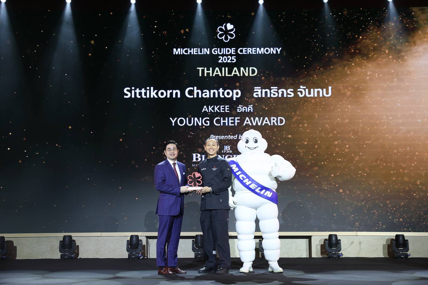 MICHELIN Guide Young Chef Award เป็นรางวัลพิเศษที่ได้รับการสนับสนุนโดย บลองแปง (Blancpain) แบรนด์นาฬิกาจากสวิตเซอร์แลนด์ รางวัลนี้มอบให้กับสุดยอดเชฟรุ่นใหม่ที่แสดงศักยภาพโดดเด่นตลอดระยะเวลา 12 เดือนที่ผ่านมา ด้วยคุณสมบัติและทักษะความสามารถในการรังสรรค์อาหารอันเป็นเอกลักษณ์เฉพาะตัว โดยผู้ได้รับรางวัลประจำปี 2568 คือ อู๋ สิทธิกร จันทป เชฟและเจ้าของร้านอัคคี ด้วยความหลงใหลในอาหารไทยแบบดั้งเดิม เชฟอู๋เลือกใช้วัตถุดิบหายากมาปรุงอาหารและจัดจานอย่างสวยงาม สะท้อนทักษะความเชี่ยวชาญ เอกลักษณ์เฉพาะตัว และผสานความทันสมัยเอาไว้อย่างลงตัว ซึ่งผู้ตรวจสอบของ มิชลิน ไกด์ ชื่นชมและรอดูการนำอาหารไทยต้นตำรับ ไปสู่มิติใหม่ ๆ ในอนาคต