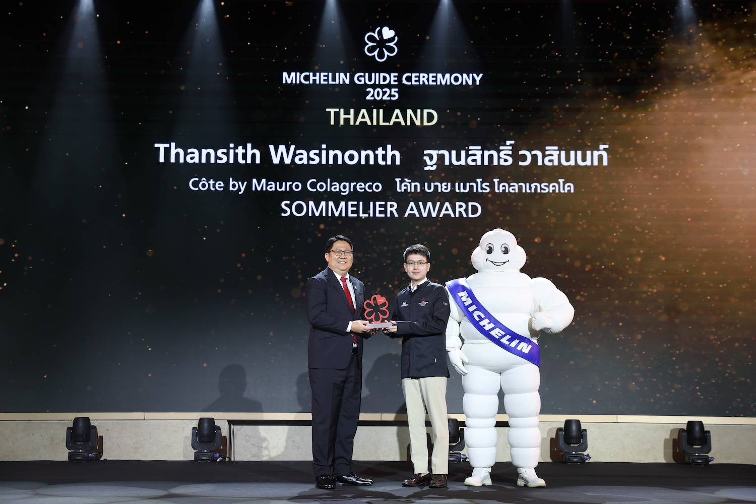MICHELIN Guide Sommelier Award เป็นรางวัลที่มอบให้กับ ซอมเมอลิเยร์ หรือผู้เชี่ยวชาญด้านไวน์ที่มีคุณสมบัติโดดเด่น โดยให้บริการอย่างมืออาชีพ และมีความชำนาญในการให้คำแนะนำเกี่ยวกับไวน์ชนิดต่าง ๆ รวมถึงการจับคู่ไวน์กับเมนูอาหาร เพื่อให้ลูกค้าได้รับประสบการณ์ด้านอรรถรสสูงสุด โดยผู้ได้รับรางวัลประจำปี 2568 คือ ฐานสิทธิ์ วาสินนท์ จากร้าน โค้ท บาย เมาโร โคลาเกรคโค ณ โรงแรมคาเพลลา กรุงเทพ ด้วยประสบการณ์ 4 ปี ในสายงานด้านซอมเมอลิเยร์ คุณฐานสิทธิ์มีความเป็นมืออาชีพและรู้จริงในการนำเสนอและแนะนำไวน์ การให้คำแนะนำอย่างมั่นใจแต่สุภาพอ่อนน้อมอยู่ในที ทำให้ลูกค้าเพลิดเพลินไปกับการลิ้มลองรสชาติไวน์อย่างได้อรรถรสเต็มเปี่ยม