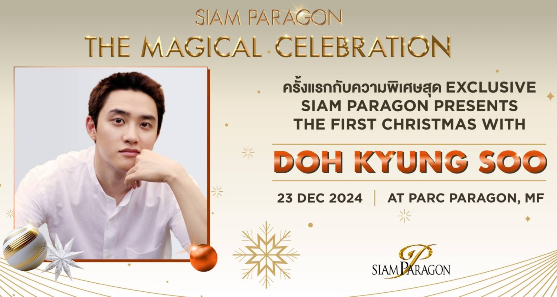 สยามพารากอน ร่วมกับ ธนาคารกสิกรไทย มอบความสุขกับเทศกาลคริสต์มาสก่อนใคร พบกับโชว์สุดพิเศษของ โดคยองซู ในงาน SIAM PARAGON PRESENTS THE FIRST CHRISTMAS WITH DOH KYUNG SOO เอ็กซ์คลูฟซีฟเฉพาะสยามพารากอน ที่เดียวเท่านั้น! คอนเฟิร์มว่าได้ว่างานนี้โดคยองซู เตรียมตัวมาเป็นอย่างดี เพื่อมอบความสุข และสร้างความทรงจำแสนพิเศษร่วมกันกับทุกคนเพื่อเป็นของขวัญคริสต์มาสสุดฟินให้กับแฟนๆ ในวันที่ 23 ธ.ค.67