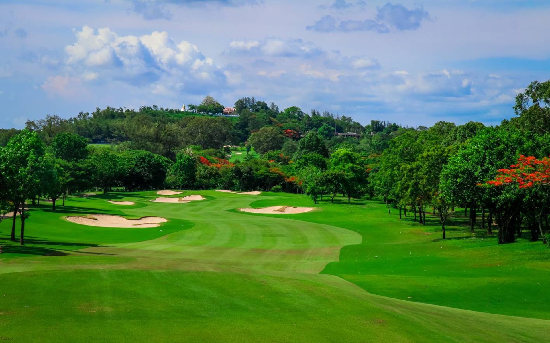สนามทั้ง 18 หลุมไม่เพียงแค่เป็นสนามที่ท้าทายนักกอล์ฟ เลย์เอาท์สนามที่มีการเล่นทั้งแบบอัพฮิลล์และดาวน์ฮิลล์ สร้างความประทับใจตั้งแต่เริ่มต้น จากแท่นทีออฟไปยังแฟร์เวย์ จนถึงกรีนมีความสวยงาม มีต้นไม้เรียงรายล้อมรอบ สนามนี้มีความท้าทายที่เด่นชัดก็คือ กรีนที่มีความสูงต่ำ ยากต่อการอ่านไลน์ ทำให้เกิดเหตุการณ์ดราม่าตื่นเต้นกันมาหลายต่อหลายครั้งในการแข่งขันในวันสุดท้าย เมื่อโอกาสในการเป็นผู้ชนะเลิศการแข่งขันเป็นไปอย่างที่ไม่มีใครคาดเดาได้ ไฮไลท์อยู่ที่หลุม 16 พาร์ 3 ระยะ 184 หลา เป็นหลุมพาร์ 3 ยาวที่สุดในสนามแห่งนี้ และเป็นหลุมซิกเนเจอร์ของสนาม โดยการเล่นจากหมุดหลังไม่ใช่เรื่องง่าย แม้ว่าน้ำรอบ ๆ แท่นทีออฟจะไม่ได้เพิ่มความกดดันต่อการเล่นก็ตาม แต่ก็มีความสวยงามทำให้บรรยากาศการแข่งขันดูสงบขึ้น การที่มีบังเกอร์ข้างกรีน และลาดเทลงในรอบ ๆ กรีนนับเป็นเรื่องที่ท้าทายอย่างมาก หากตีพลาดก็จะทำให้เสียแต้มได้โดยง่ายเช่นกัน ซึ่งหลุมนี้ใช้เป็นหลุมรางวัล โฮลอินวัน ทุก ๆ ครั้งของรายการฮอนด้า แอลพีจีเอ ไทยแลนด์