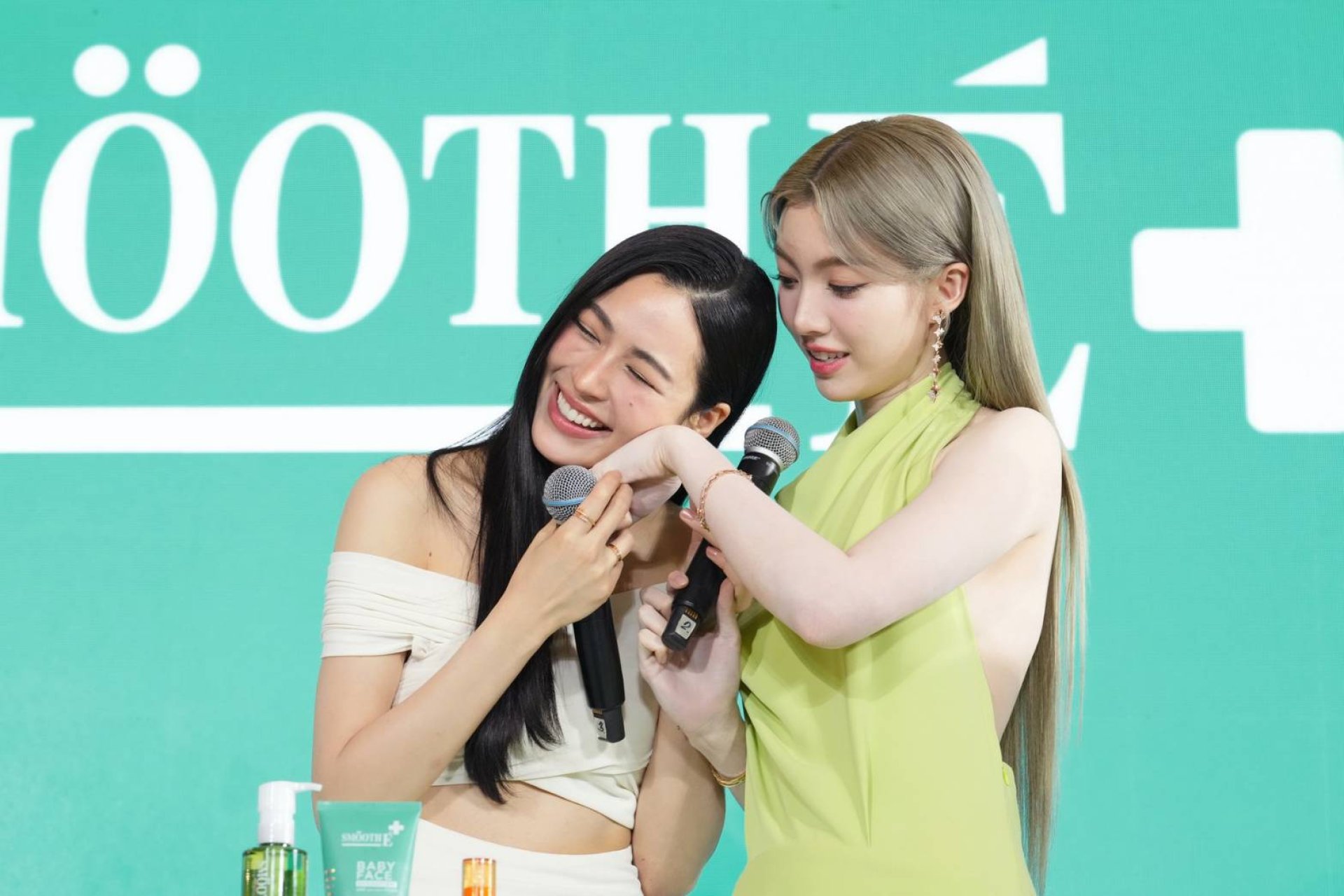 เรียกเสียงกรี๊ดสนั่นห้างเมื่อ "หลิง-ออม" ได้มาพูดคุยและทดลองผลิตภัณฑ์แบบใกล้ชิดตัวติดกัน และเสียงกรี๊ดดังขึ้นอีกในช่วงมินิเกม ที่ "หลิง-ออม" ทั้งต้องประสานสายตาและหน้าใกล้กันจนเกือบจะชิด งานนี้ดับเบิ้ลทั้งความสนุกและอัดแน่นความฟิน ให้กับแฟนๆ และลูกค้าสมูทอี ไปทั่วทั้งงาน