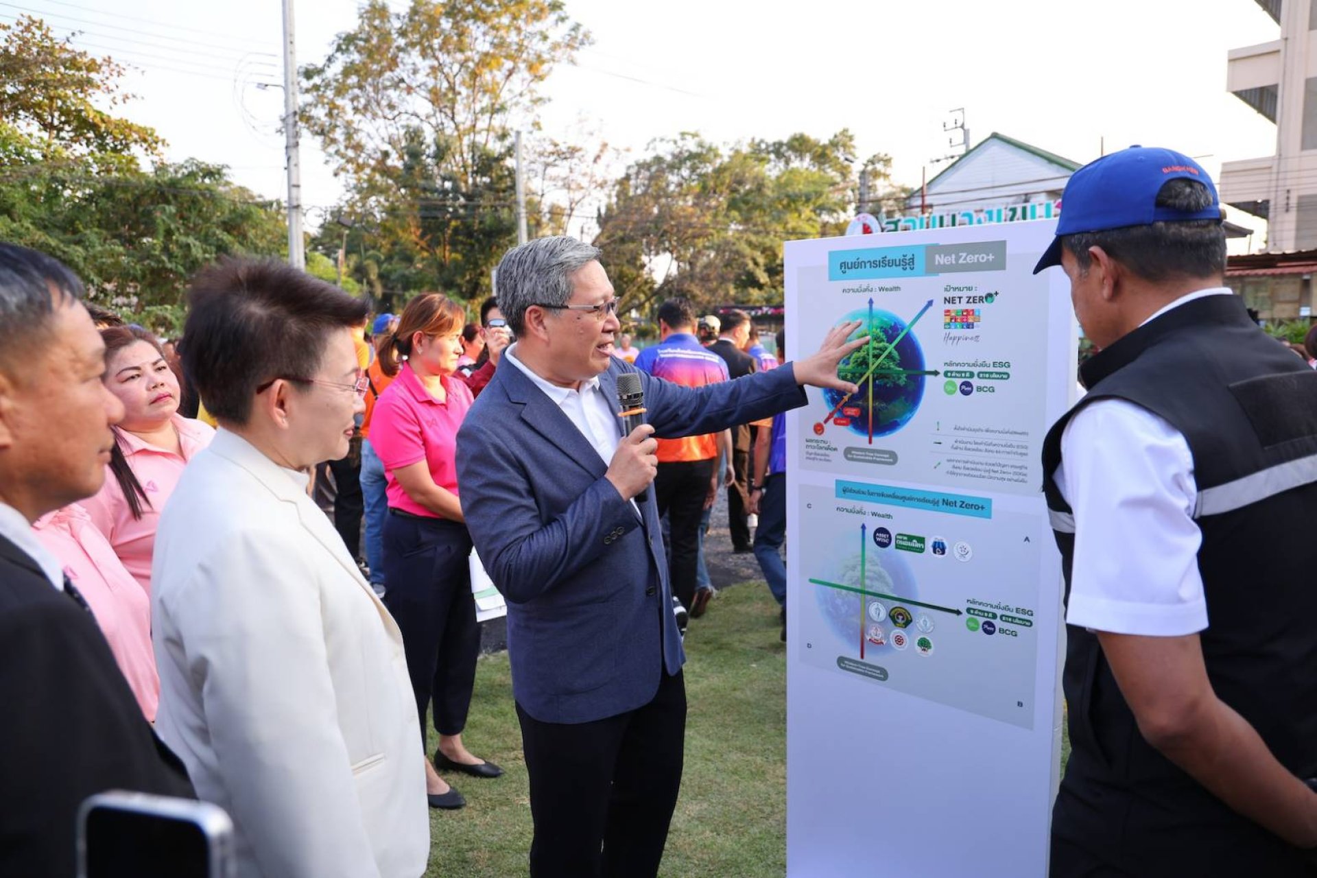 นายวุฒิ วิพันธ์พงษ์ รองประธานเจ้าหน้าที่บริหารความยั่งยืนทางธุรกิจและสิ่งแวดล้อม บริษัท แอสเซทไวส์ จำกัด (มหาชน) หรือ ASW บริษัทพัฒนาอสังหาริมทรัพย์ที่เป็นผู้นำด้านไลฟ์สไตล์ภายใต้แนวคิด ความสุขที่ออกแบบมาเพื่อคุณ หรือ We Build Happiness กล่าวว่า แอสเซทไวส์ได้พัฒนา "ศูนย์การเรียนรู้สู่ Net Zero+ ขึ้นเป็นแห่งแรก และส่งมอบให้แก่สำนักงานเขตบางเขน กรุงเทพมหานคร เพื่อเปิดให้ประชาชนทั่วไปเข้ามาศึกษาแนวทางการปล่อยก๊าซเรือนกระจกให้เป็นศูนย์ พร้อมกับแก้ปัญหาสังคมและเศรษฐกิจให้เป็นเรื่องเดียวกัน โดยศูนย์การเรียนรู้นี้เป็นส่วนหนึ่งของโครงการพัฒนาสวนร่วมใจบางเขน รามอินทรา 2 ให้เป็นศูนย์อาหาร (Hawker Center) และศูนย์เรียนรู้ครบวงจรของสำนักงานเขตบางเขน โดยได้รับเกียรติจากนายชัชชาติ สิทธิพันธุ์ ผู้ว่าราชการกรุงเทพมหานคร, นางวันทนีย์ วัฒนะ ปลัดกรุงเทพมหานคร สำนักปลัดกรุงเทพมหานคร และนางสาวอัญชนา บุญสุยา ผู้อำนวยการเขตบางเขน มาร่วมเป็นประธานในพิธีเปิดและเยี่ยมชมศูนย์การเรียนรู้
