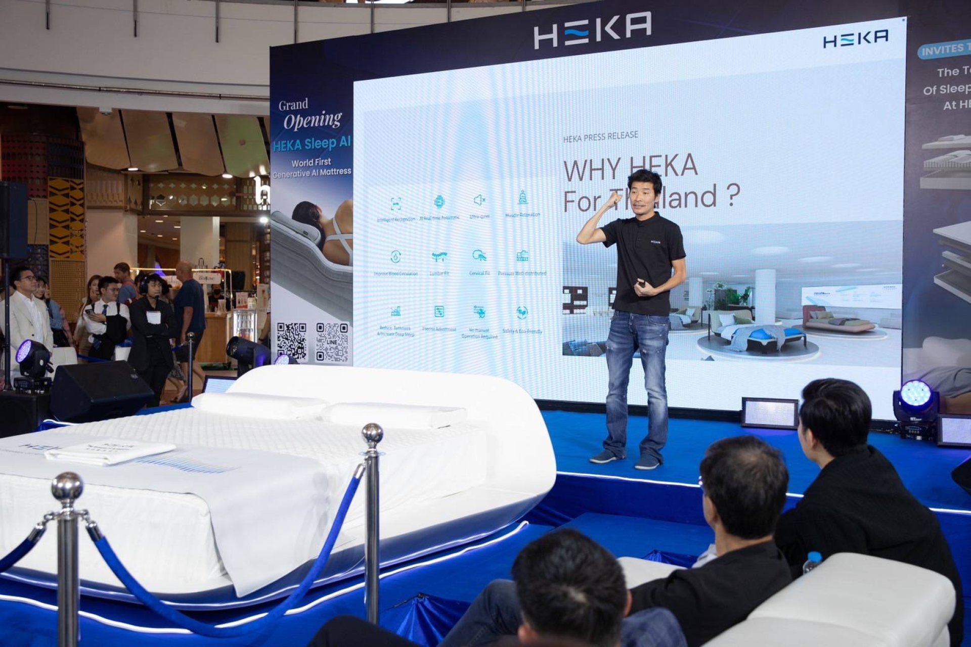 โดย HEKA Thailand ได้จัดงานเปิดตัวนวัตกรรมที่นอน AI ครั้งแรกของโลก กับสื่อมวลชนในงาน "The World First Genarative AI Mattress Opennig Store In Thailand" ณ Central World (Oval Area Venue) ซึ่งภายในงานมี Opening Ceremony พร้อม mini Concert ของนักร้องเสียงคุณภาพระดับตำนาน "ปั่น ไพบูลเกียรติ์เขียวแก้ว" พร้อมผู้บริหารชูจุดยืนที่ไม่เหมือนใครของแบรนด์ Heka พร้อมรีวิวจากผู้ใช้จริงเซเลปคนดัง อาทิ ปุ่น-น.ต.ศิธา ทิวารี และไฮไลท์สำคัญแขกรับเชิญสุดสเปเชียล นางเอกซุปตาร์เบอร์หนึ่งตลอดกาล "อั้ม-พัชราภา ไชยเชื้อ" มาร่วมพูดคุยและบอกเล่าประสบการณ์สุดพิเศษของที่นอน Heka ในครั้งนี้ด้วย