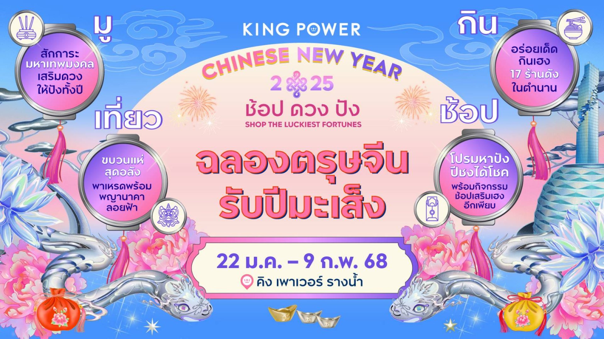 ปักหมุด!! แล้วมาฉลองตรุษจีน ช้อป ดวง ปัง ครบจบในที่เดียว ตั้งแต่วันที่ 22 มกราคม - 4 กุมภาพันธ์ 2568 ที่ คิง เพาเวอร์ รางน้ำ, ศรีวารี, พัทยา และภูเก็ต