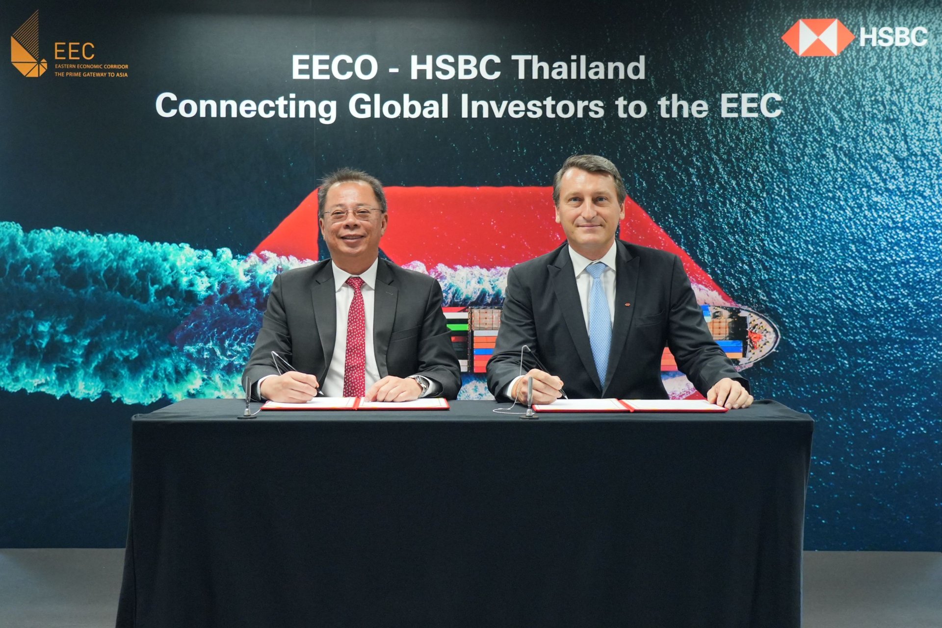 ดร.จุฬา สุขมานพ เลขาธิการคณะกรรมการนโยบายเขตพัฒนาพิเศษภาคตะวันออก (สกพอ.) หรืออีอีซี และนายจอร์โจ กัมบา ประธานเจ้าหน้าที่บริหารและหัวหน้ากลุ่มลูกค้าธุรกิจ ธนาคารเอชเอสบีซี ประเทศไทย ร่วมกันลงนามบันทึกข้อตกลง (MOU) ประกาศความร่วมมือเชิงกลยุทธ์ เพื่อดึงดูดการลงทุนระดับโลก สู่พื้นที่เขตพัฒนาพิเศษภาคตะวันออก (อีอีซี) และยกระดับประเทศไทยสู่การเป็นศูนย์กลางของอุตสาหกรรมมูลค่าสูง โดยจะเพิ่มศักยภาพในการเข้าถึงนักลงทุนซึ่งไม่จำกัดอยู่เพียงในระดับภูมิภาค แต่ยังรวมถึงนักลงทุนระดับโลกในระเบียงเศรษฐกิจที่สำคัญ ผ่านเครือข่ายระดับนานาชาติของธนาคารเอชเอสบีซีใน 58 ประเทศและเขตดินแดน สร้างโอกาสการลงทุนจากตลาดสำคัญ อาทิ จีน ยุโรป เอเชียตะวันออกเฉียงใต้ ตะวันออกกลาง อินเดีย ไต้หวัน และญี่ปุ่น โดยจะมุ่งพัฒนากลยุทธ์ดึงดูดการลงทุนสู่พื้นที่อีอีซี พร้อมให้การสนับสนุนด้านโซลูชันทางการเงิน และคำปรึกษาครบวงจร เพื่อสร้างสภาพแวดล้อมเอื้อต่อการลงทุนจากทั่วโลก