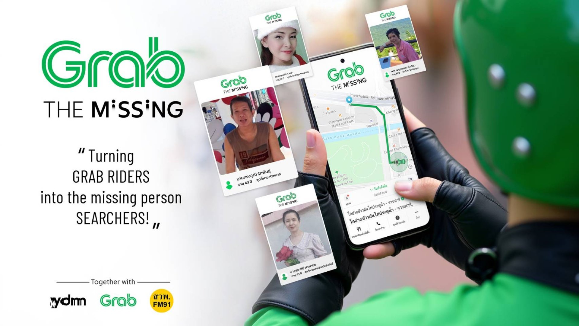 Grab ซูเปอร์แอปอันดับหนึ่งในเอเชียตะวันออกเฉียงใต้ เปิดตัวแคมเปญ Grab The Missing อย่างเป็นทางการ โดยร่วมมือกับสถานีวิทยุเพื่อความปลอดภัยและการจราจร สวพ. FM91 และ YDM Thailand ครีเอทีฟเอเจนซีมาแรง เพื่อสร้างเครือข่ายค้นหาผู้สูญหายทั่วประเทศ ผ่านไรเดอร์และพี่คนขับ Grab นับแสนรายทั่วไทย โดยเริ่มใช้งานจริงตั้งแต่ปลายเดือนมีนาคม 2568 ที่ผ่านมา ผ่านระบบแจ้งเตือนและรายงานแบบเรียลไทม์ที่ฝังอยู่ในแอปพลิเคชัน Grab ของคนขับและไรเดอร์