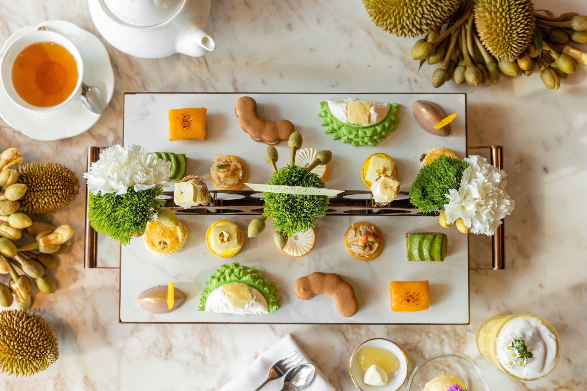 โดยทางโรงแรมคัดสรรเฉพาะทุเรียนหมอนทองเกรดพรีเมียมจาก Toby' s Farm สวนทุเรียนคุณภาพจาก จ.จันทบุรี เรียกว่าเป็นประสบการณ์การจิบน้ำชายามบ่ายที่ผสานความหรูหราเข้ากับรสชาติอันเป็นเอกลักษณ์ของทุเรียนหมอนทอง จัดเต็มเมนูคาวหวานทั้งหมด 12 รายการมาจับคู่กับเครื่องดื่มแสนอร่อยทั้งชา กาแฟ และสมูทตี้ ถือเป็นการยกระดับ ความโลคอล ด้วยการนำเสนอแบบ โกลบอล ระดับห้าดาวได้อย่างลงตัว