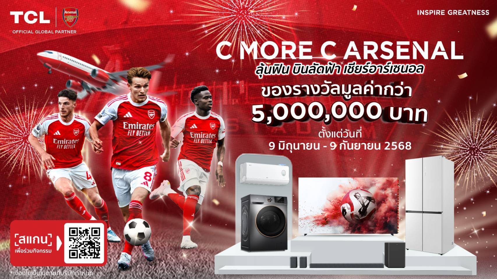 TCL ผู้นําด้านเทคโนโลยีและนวัตกรรมในตลาดเครื่องใช้ไฟฟ้าในบ้าน แบรนด์ทีวีระดับโลก เดินหน้ารุกตลาดไทย เปิดตัวไลน์อัพสมาร์ททีวีระดับพรีเมียมปี 2568 "C Series QD Mini LED" ส่ง 3 ซีรีย์ "C6K C7K C8K" ชูเทคโนโลยี Quantum Dot Mini LED ให้ความละเอียดขั้นสุด CrystGlow WHVA Panel นวัตกรรมเอกสิทธิ์เดียวจาก TCL ระบบภาพอัจฉริยะ AI Picture Quality Engine 3.0 ยกระดับประสบการณ์ความบันเทิงภาพเสียงระดับโรงภาพยนตร์ ชวนสัมผัสประสบการณ์ความบันเทิงเหนือระดับ ผ่านแคมเปญ "C MORE C ARSENAL" ตอกย้ำแบรนด์พันธมิตรระดับโลกกับสโมสรฟุตบอล "อาร์เซนอล" ควง "ป้อง-ณวัฒน์ กุลรัตนรักษ์" แบรนด์พรีเซนเตอร์ จัดเซอร์ไพรส์ ร่วมลุ้นบินลัดฟ้าเชียร์ ทีมรักติดขอบสนามประเทศอังกฤษ