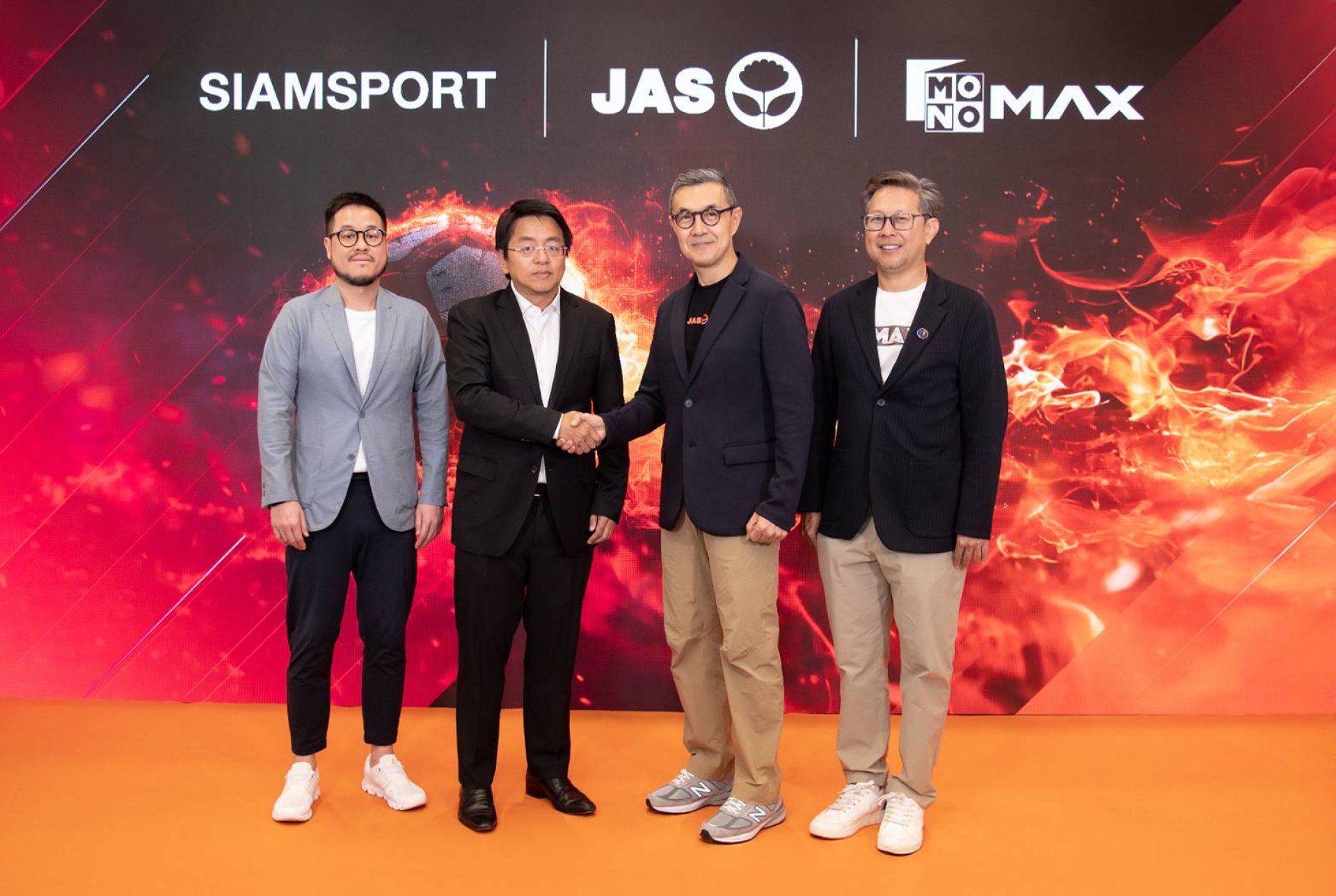 ซึ่งความร่วมมือในครั้งนี้ นำโดย ดร.โสรัชย์ อัศวะประภา ประธานเจ้าหน้าที่บริหาร บริษัท จัสมิน อินเตอร์เนชั่นแนล จำกัด (มหาชน) หรือ JAS , คุณนวมินทร์ ประสพเนตร ประธานเจ้าหน้าที่บริหาร บริษัท โมโนเน็กซ์ จำกัด (มหาชน) หรือ MONO และ คุณวิลักษณ์ โหลทอง ประธานกลุ่มบริษัท SIAMSPORT ร่วมลงนามความร่วมมืออย่างเป็นทางการ โดยมี คุณบูรณิจฉ์ รัตนวิเชียร (บอ.บู๋), คุณอดิสรณ์ พึ่งยา (แจ็คกี้), คุณสาธิต กรีกุล (บิ๊กจ๊ะ) และ คุณณัฐพล ดำรงโรจน์วัฒนา (ตังกุย) ทีมนักพากย์และผู้บรรยายมืออาชีพสุดเก๋าระดับแถวหน้าของเมืองไทยในกีฬาฟุตบอลเข้าร่วมแสดงความยินดี