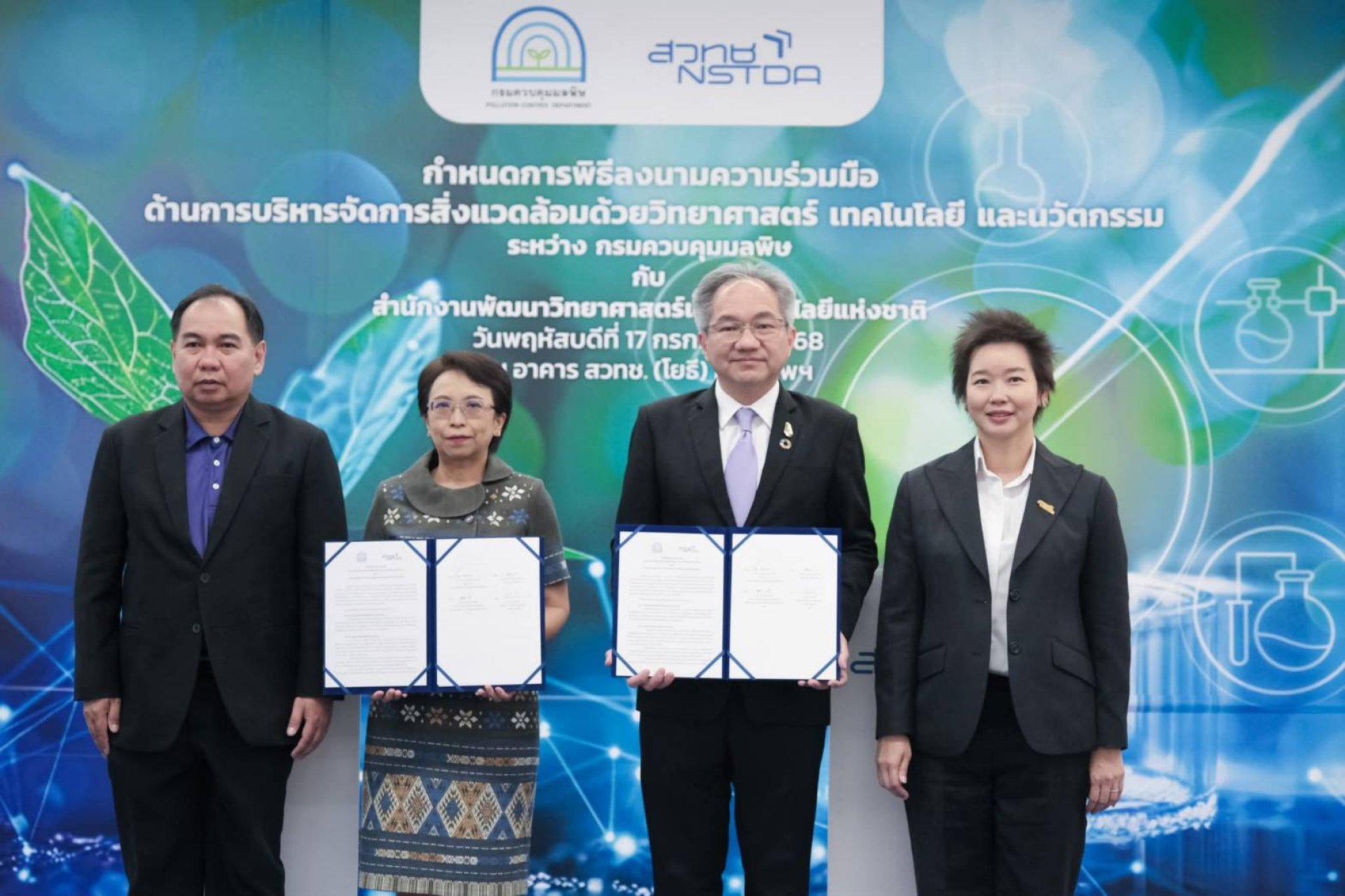 เมื่อวันที่ 17 กรกฎาคม 2568 สำนักงานพัฒนาวิทยาศาสตร์และเทคโนโลยีแห่งชาติ (สวทช.) โดยศูนย์นาโนเทคโนโลยีแห่งชาติ (นาโนเทค) ภายใต้ กระทรวงการอุดมศึกษา วิทยาศาสตร์ วิจัยและนวัตกรรม (อว.) ลงนามความร่วมมือด้านการบริหารจัดการสิ่งแวดล้อมด้วยวิทยาศาสตร์ เทคโนโลยี และนวัตกรรม (วทน.) กับกรมควบคุมมลพิษ (คพ.) มุ่งเน้นการบริหารจัดการคุณภาพอากาศ (PM2.5) และคุณภาพน้ำ นำร่องใช้นวัตกรรมตรวจวัดและพัฒนาคุณภาพน้ำ ร่วมแก้ไขปัญหาคุณภาพน้ำในพื้นที่แม่น้ำและลุ่มน้ำกก เพื่อขับเคลื่อนงานวิจัยให้เข้าถึงประชาชน แก้ไขปัญหาสำคัญของประเทศอย่างยั่งยืน