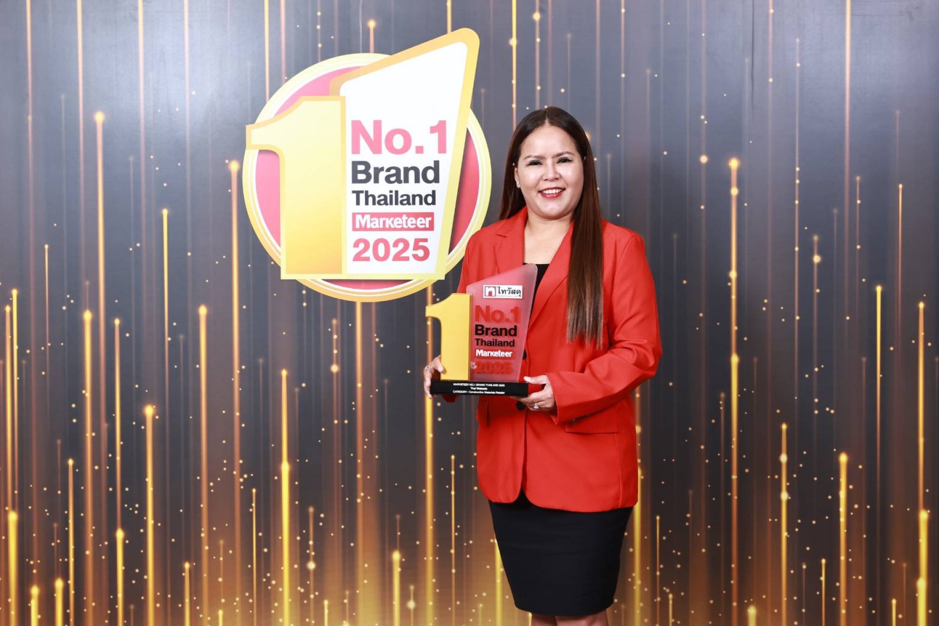 นางสาวชุติพร คงเจริญสุข ผู้ช่วยกรรมการผู้จัดการใหญ่ ฝ่ายการตลาด บริษัท ซีอาร์ซี ไทวัสดุ จำกัด ในเครือเซ็นทรัล รีเทล ขึ้นรับรางวัล Marketeer No.1 Brand Thailand 2025 ในหมวด "ร้านขายวัสดุก่อสร้างที่มีหลายสาขาทั่วประเทศ" (Construction Materials Retailer) หลังไทวัสดุคว้ารางวัลแบรนด์ยอดนิยมอันดับ 1 จากผลสำรวจความเชื่อมั่นของผู้บริโภคกว่า 6,000 คนทั่วประเทศ