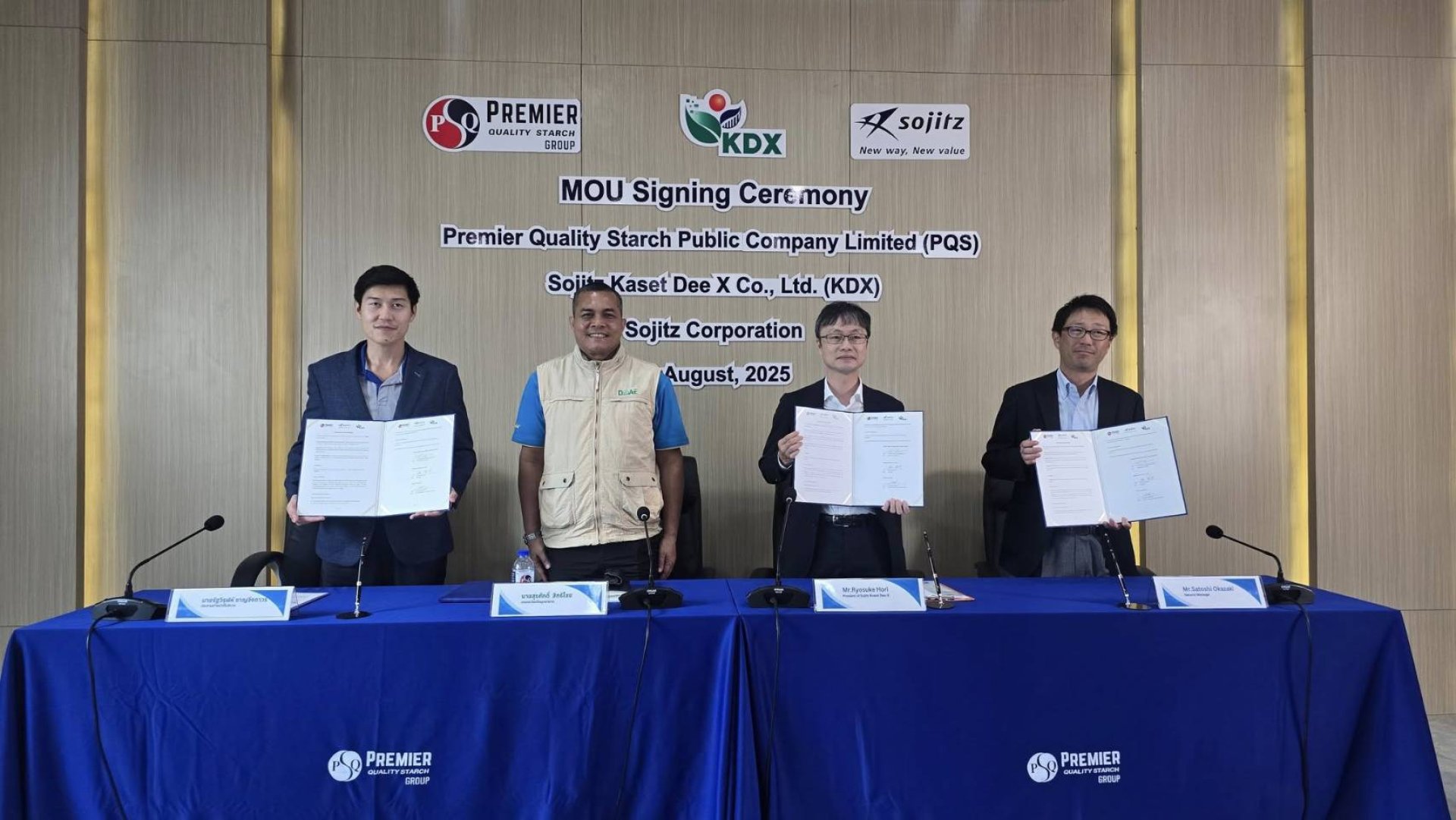 บริษัท พรีเมียร์ควอลิตี้สตาร์ช จำกัด (มหาชน) หรือ PQS ผู้ผลิตและจำหน่ายแป้งมันสำปะหลังชั้นนำของไทย ประกาศความร่วมมือเชิงกลยุทธ์กับ บริษัท โซจิทสึ เกษตร ดี เอ็กซ์ จำกัด หรือ KDX ผู้นำด้านการสนับสนุนเกษตรไทย พร้อมด้วยบริษัทแม่, โซจิทสึ คอร์ปอเรชั่น (Sojitz Corporation) กลุ่มบริษัทการค้าระหว่างประเทศชั้นนำจากประเทศญี่ปุ่น เดินหน้าโครงการ Low Carbon Starch อย่างเต็มรูปแบบ มุ่งสร้างมาตรฐานใหม่ให้แก่อุตสาหกรรมมันสำปะหลังไทย ด้วยการผลิตแป้งมันสำปะหลังคาร์บอนต่ำที่สามารถตรวจสอบย้อนกลับแหล่งที่มาได้ (Traceable Sourcing) ตลอดห่วงโซ่การผลิต ตอบโจทย์ตลาดโลกที่ให้ความสำคัญกับความยั่งยืนและ ESG