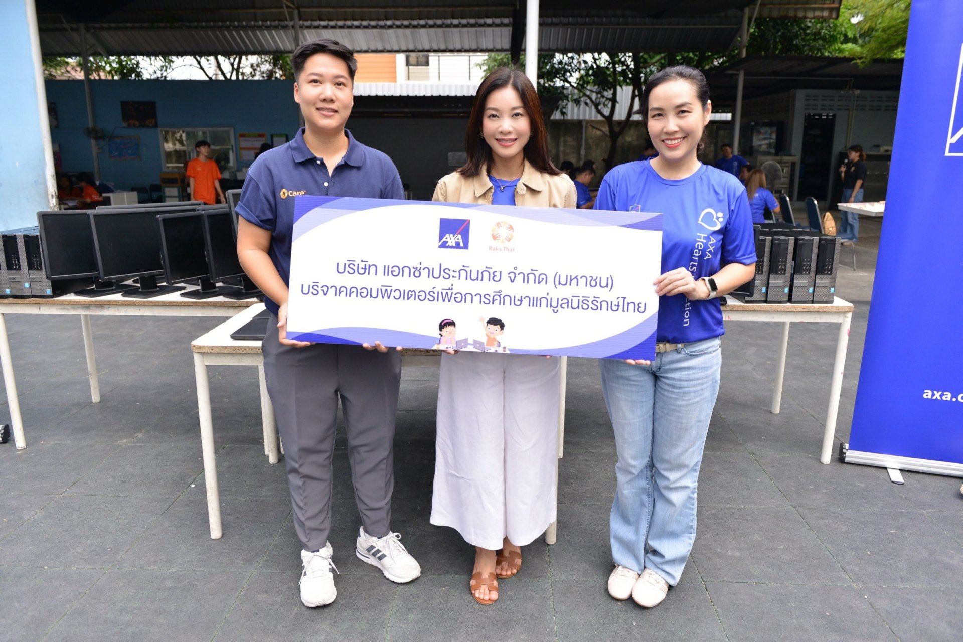 "แอกซ่าประกันภัย" สานต่อพันธกิจเพื่อสังคมผ่านโครงการ "Hearts in Action" มอบโน้ตบุ๊กและคอมพิวเตอร์เพื่อการศึกษาให้แก่ มูลนิธิรักษ์ไทย เพื่อส่งมอบต่อให้กับเยาวชนผู้ด้อยโอกาสในประเทศไทย โดยอุปกรณ์ทั้งหมดจะถูกนำไปแจกจ่ายให้กับโรงเรียนและศูนย์การเรียนรู้ เพื่อส่งเสริมการเรียนรู้ การค้นคว้าข้อมูล และการเข้าถึงเทคโนโลยีที่จำเป็นสำหรับอนาคต