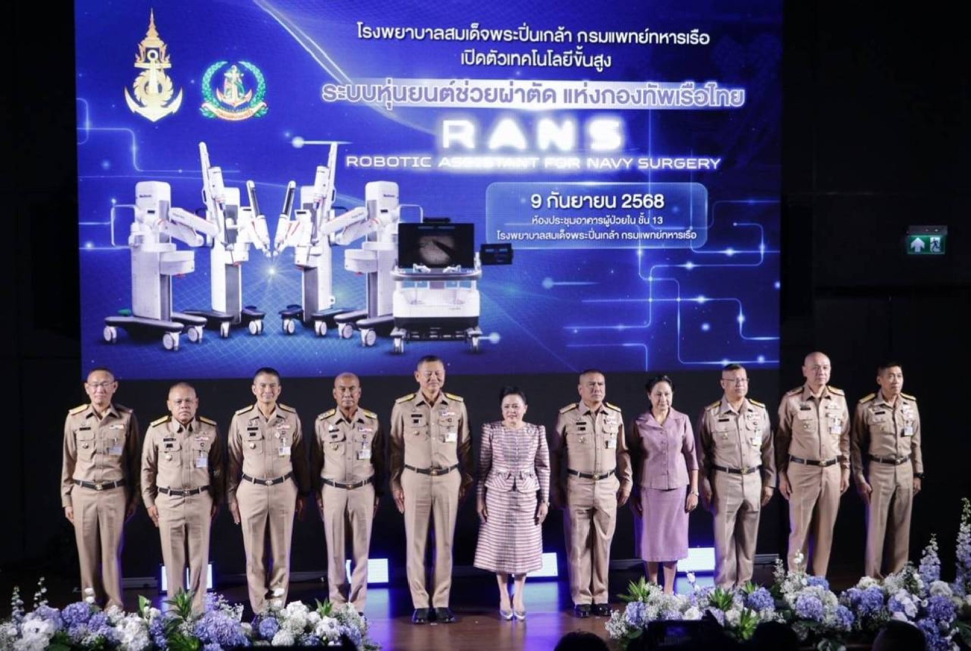 วันที่ 9 กันยายน 2568 พลเรือเอกจิรพล ว่องวิทย์ ผู้บัญชาการทหารเรือ และพลเรือตรีหญิงด็อกเตอร์ ทันตแพทย์หญิง จีระวัฒน์ กฤษณพันธ์ ว่องวิทย์ นายกสมาคมภริยาทหารเรือ เป็นประธาน ในพิธีเปิดตัวเทคโนโลยีขั้นสูง ระบบหุ่นยนต์ช่วยผ่าตัด แห่งกองทัพเรือไทย (RANS : Robotic Assistant for Navy Surgery) ณ โรงพยาบาลสมเด็จพระปิ่นเกล้า กรมแพทย์ทหารเรือ เขตธนบุรี กรุงเทพฯ โดยมี พลเรือโท ประทีป ตังติสานนท์ เจ้ากรมแพทย์ทหารเรือ และพลเรือตรี สมชาย จันทโรธร ผู้อำนวยการโรงพยาบาลสมเด็จพระปิ่นเกล้า กรมแพทย์ทหารเรือ พร้อมด้วยคณะผู้บริหาร และกำลังพลกองทัพเรือร่วมในพิธี ณ ห้องประชุมอาคารผู้ป่วยใน ชั้น 13 โรงพยาบาลสมเด็จพระปิ่นเกล้า กรมแพทย์ทหารเรือ แขวงบุคคโล เขตธนบุรี กรุงเทพฯ