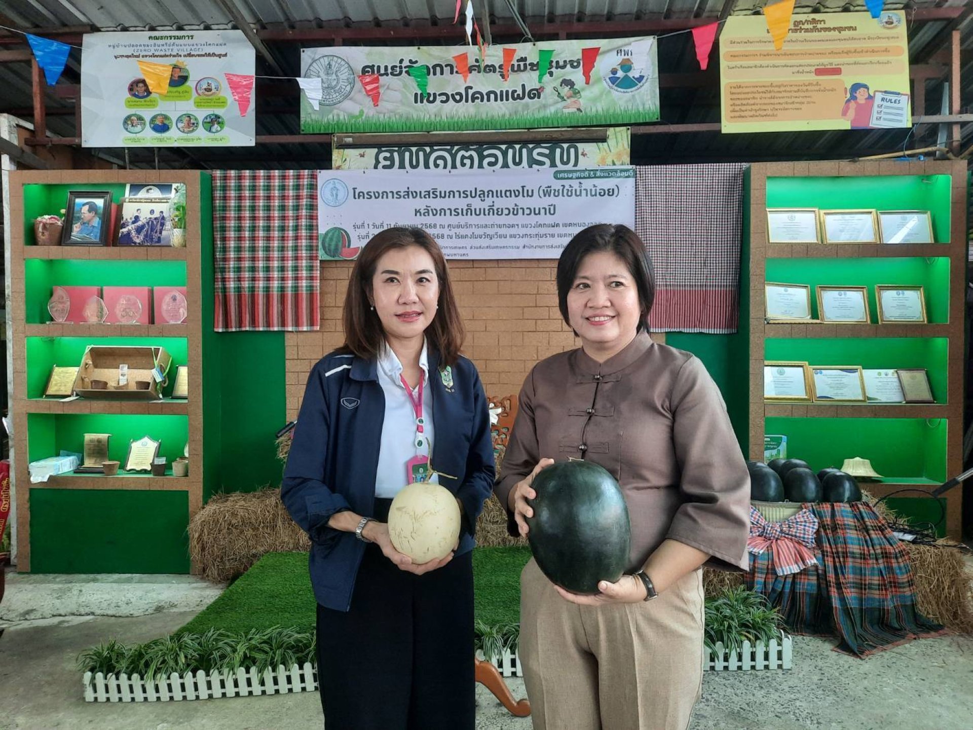 สำนักพัฒนาสังคมกรุงเทพมหานคร จัดโครงการส่งเสริมการปลูกพืชน้ำน้อยในพื้นที่ เขตหนองจอก กรุงเทพมหานคร ร่วมกับ เมล็ดพันธุ์ตราตะวันต้นกล้า นำร่องส่งเสริมการปลูกแตงโม แบล็คแจ็ค และแคนตาลูป สวีทดี 25 สายพันธุ์คุณภาพที่ใช้น้ำน้อยในการปลูก แต่ให้ผลผลิตคุ้มค่า สามารถสร้างรายได้หกหลักให้เกษตรกรใน 2 เดือน และตอบโจทย์ความต้องการของตลาดปลายทาง