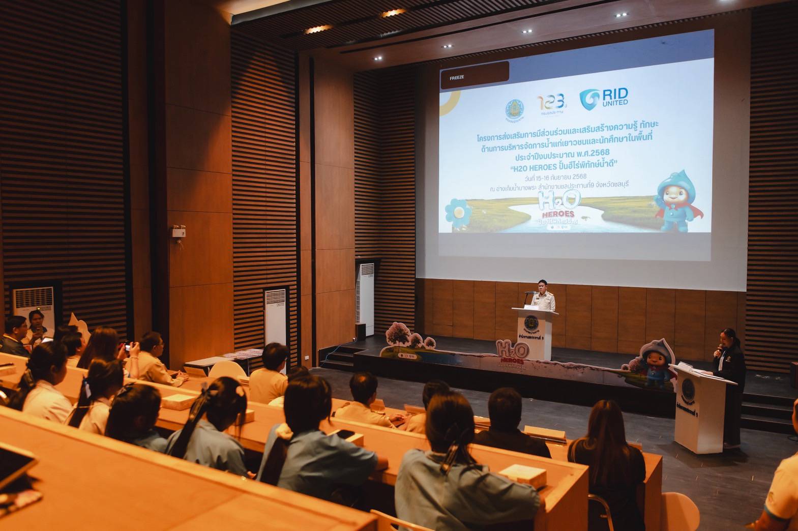 นายทินกร เหลือล้น ผู้อำนวยการสำนักงานชลประทานที่ 9 กรมชลประทาน เป็นประธานเปิดกิจกรรม "H2O HEROES : ปั้นฮีโร่พิทักษ์นํ้าดี" ภายใต้โครงการส่งเสริมการมีส่วนร่วม เสริมสร้างความรู้ ทักษะด้านการบริหารจัดการน้ำแก่เยาวชนและนักศึกษาในพื้นที่ประจำปีงบประมาณ พ.ศ. 2568 จัดขึ้นระหว่างวันที่ 15-16 กันยายน 2568 ณ อ่างเก็บน้ำบางพระ สำนักงานชลประทานที่ 9 จ.ชลบุรี โดยมีเยาวชนคนรุ่นใหม่ จากมหาวิทยาลัยบูรพา มหาวิทยาลัยเทคโนโลยีราชมงคลตะวันออก และโรงเรียนหนองรีมงคลสุขสวัสดิ์ เข้าร่วมกิจกรรมกว่า 100 คน