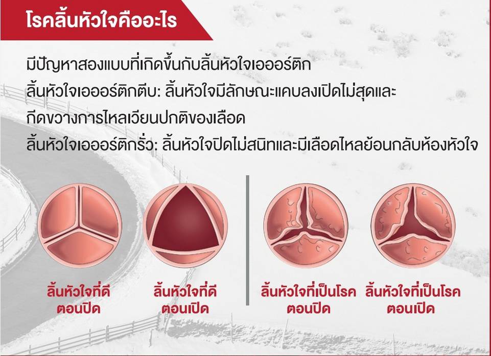 โรคลิ้นหัวใจ คือความผิดปกติที่ส่งผลกระทบต่อลิ้นหัวใจ โดยหลัก ๆ แล้วคือ ภาวะลิ้นหัวใจตีบ (stenosis) หรือลิ้นหัวใจรั่ว (regurgitation) สำหรับภาวะลิ้นหัวใจเอออร์ติกตีบ ซึ่งเป็นภาวะที่ลิ้นหัวใจแคบลงจนขัดขวางการไหลของเลือดจากหัวใจ หากไม่ได้รับการรักษาอาจนำไปสู่ภาวะแทรกซ้อนร้ายแรง เช่น หัวใจล้มเหลว หรือหัวใจหยุดเต้นเฉียบพลัน ผู้ป่วยที่มีภาวะลิ้นหัวใจเอออร์ติกตีบขั้นรุนแรงอาจมีอาการเหนื่อยผิดปกติ แน่นหน้าอก ใจสั่น หัวใจเต้นผิดจังหวะ หน้ามืดเป็นลม หรือขาบวม อาการเหล่านี้มักเป็นสัญญาณให้ต้องไปพบแพทย์ อย่างไรก็ตาม ยังมีภัยเงียบที่น่ากังวลนั่นก็คือ ผู้ป่วยภาวะลิ้นหัวใจเอออร์ติกตีบขั้นรุนแรงถึง 33-50% ไม่มีอาการใด ๆ ในขณะที่ได้รับการวินิจฉัย โดยการวินิจฉัยประกอบด้วยการซักประวัติ ตรวจร่างกาย และการตรวจหัวใจด้วยคลื่นเสียงความถี่สูง (echocardiography) เพื่อประเมินความรุนแรงของโรคและความเร่งด่วนในการรักษา