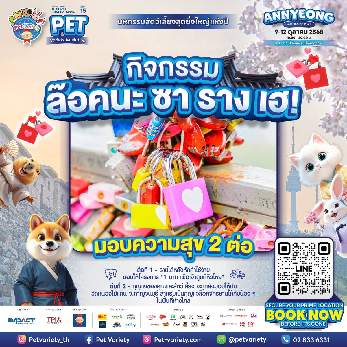 "SmartHeart presents Thailand International Pet Variety Exhibition 2025" มหกรรมสัตว์เลี้ยงสุดยิ่งใหญ่ กลับมาสร้างความสุขเป็นครั้งที่ 15 ภายใต้คอนเซปต์ "ANNYEONG เพื่อนรักตะลุยเกาหลี" ที่จำลองกลิ่นอายเกาหลีย้อนยุคมาไว้กลางอิมแพ็ค เมืองทองธานี ให้คนรักสัตว์พาเพื่อนซี้สี่ขามาสนุก ถ่ายรูปชิค ๆ และช้อปสินค้าเพลิน ๆ เหมือนบินไปโซลจริง! จัดเต็ม 4 วัน ระหว่างวันที่ 9-12 ตุลาคม 2568 ณ อาคาร 78 ศูนย์แสดงสินค้าและการประชุมอิมแพ็ค เมืองทองธานี พบกับสัตว์เลี้ยงนานาชนิดกว่า 20,000 ตัว และบูธสินค้า-บริการสัตว์เลี้ยงกว่า 250 บูธ ตั้งแต่แฟชั่น อาหาร ของเล่น จนถึงนวัตกรรมเทคโนโลยีล่าสุด พร้อมโปรโมชั่นพิเศษพร้อมสนุกไปกับกิจกรรมสุดมันส์และโซนไฮไลท์ที่ยกแลนด์มาร์กเกาหลีมาไว้ในงานเดียว!