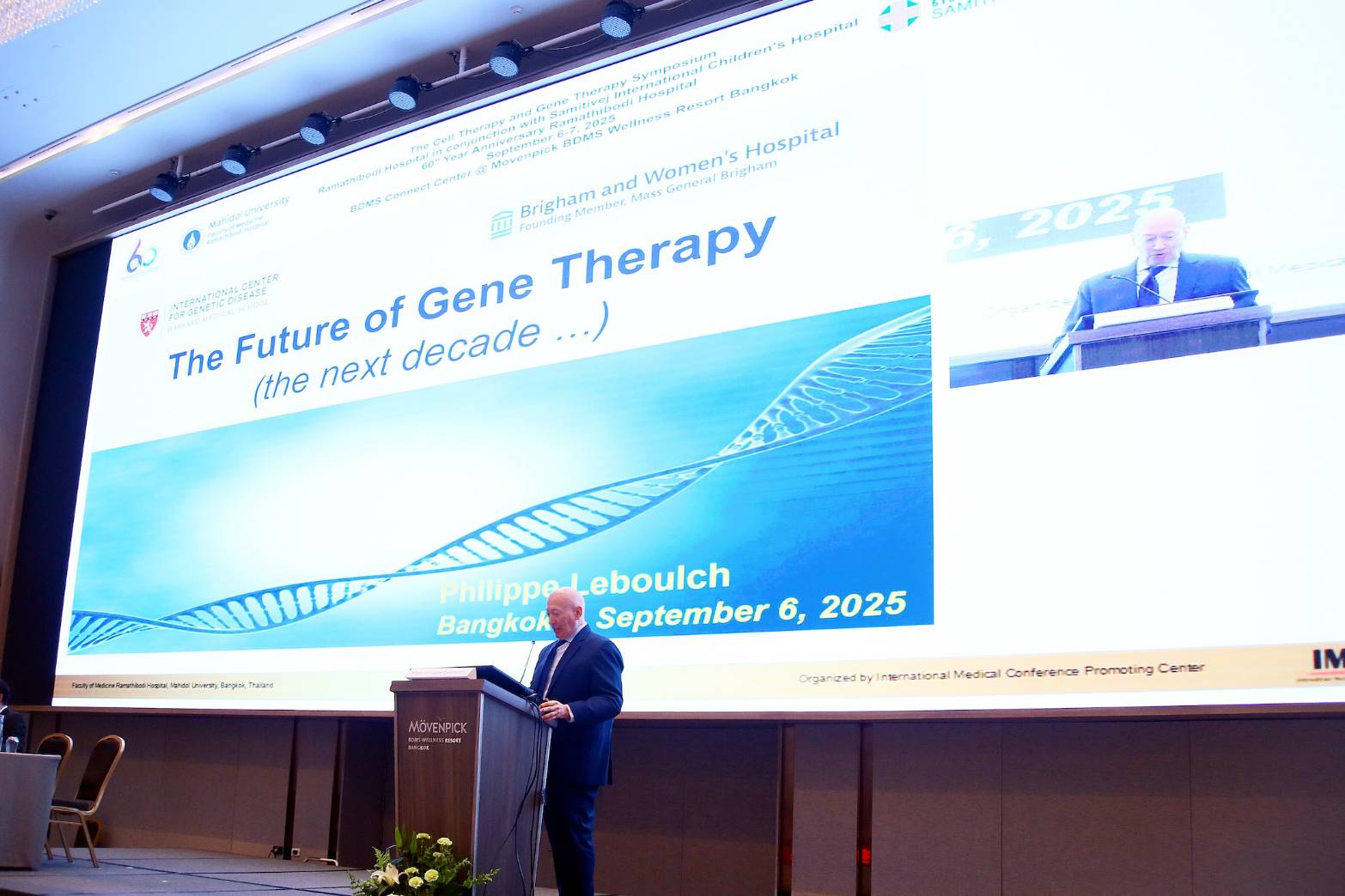 นอกจากนี้ยังได้รับเกียรติจากวิทยากรผู้เชี่ยวชาญจากต่างประเทศ ได้แก่ Professor Philippe Leboulch แพทย์และนักวิจัยจากมหาวิทยาลัย Paris-Saclay ประเทศฝรั่งเศส และมหาวิทยาลัยฮาร์วาร์ด ประเทศสหรัฐอเมริกา แพทย์ผู้เชี่ยวชาญและทำการศึกษาพัฒนา lentivirus เพื่อเป็นพาหะสำหรับการปรับแต่งยีนของโรคพันธุกรรมต่างๆ และเป็นหนึ่งในทีมการศึกษาวิจัยการรักษาด้วยยีนบำบัดในผู้ป่วยโรคเลือดจางธาลัสซีเมีย (Beta-Thalassemia) ได้สำเร็จ โดยจะมาร่วมบรรยายในหัวข้อ All About the Future of Gene Therapy