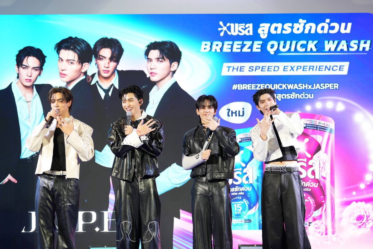 บรรยากาศในงาน BREEZE QUICK WASH : THE SPEED EXPERIENCE เต็มไปด้วยความสนุกสนานเมื่อ 4 หนุ่ม จุง, อู๋, แซนต้า, ปอนด์ วง JASP.ER ขึ้นเวทีเปิดโชว์เพลง Take It Off ก่อนร่วมพูดคุยแบบเป็นกันเองในหัวข้อ Lifestyle with บรีส สูตรซักด่วน ที่เชื่อมโยงการใช้ชีวิตแบบทันใจเข้ากับเสน่ห์ของ Quick Wash จากนั้นก็ถึงช่วงเวลาแห่งความสนุกกับเกมสงครามซักด่วน Quick Wash Challenge ที่ JASP.ER แท็กทีมลงสนามร่วมกับผู้โชคดี สร้างโมเมนต์สุดสนุกและเรียกเสียงหัวเราะดังสนั่นฮอลล์ นอกจากนี้ยังมีช่วงกิจกรรมสุดใกล้ชิดกับผู้โชคดีที่ได้ถ่ายภาพแบบ Exclusive และเล่นเกมสนุก ๆ บนเวที ก่อนปิดท้ายด้วยโชว์พิเศษสุดมันส์จาก JASP.ER ที่ขนเพลงดังอย่าง จีบได้มั้ย และ SADISTIC มาเรียกเสียงกรี๊ดและปิดงานอย่างเต็มอิ่ม งานนี้นอกจากแฟนๆ จะได้สนุกและเต็มอิ่มไปกับความบันเทิงแบบเอ็กซ์คลูซีฟที่ บรีส ตั้งใจมอบให้แฟน ๆ ทุกคนแล้ว บรีสยังจัดโซนสาธิตประสิทธิภาพที่ทรงพลังของ บรีส สูตรซักด่วน และกิจกรรมอีกมากมายที่ให้ผู้เข้าร่วมงานได้สัมผัสนวัตกรรมซักผ้าใหม่ล่าสุดอีกด้วย