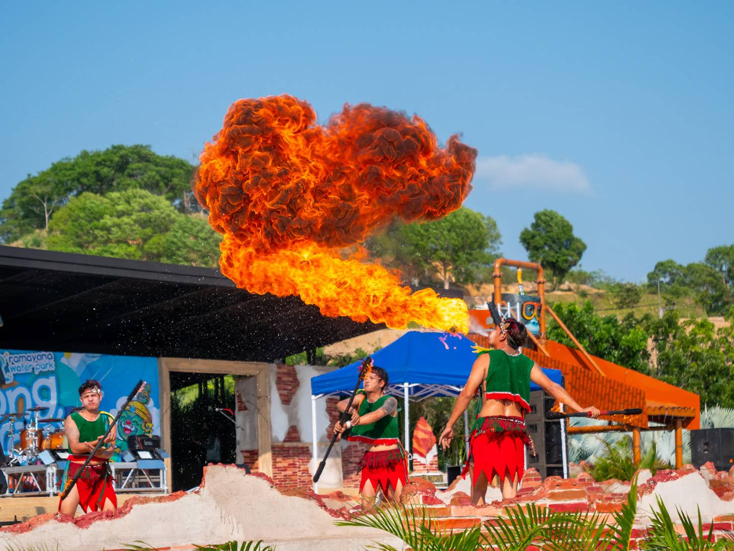 -เพลิดเพลินไปกับการแสดงเต้นลิมโบ และระบำฮาวายพ่นไฟสุดตระการตา ที่ Double Wave Pool