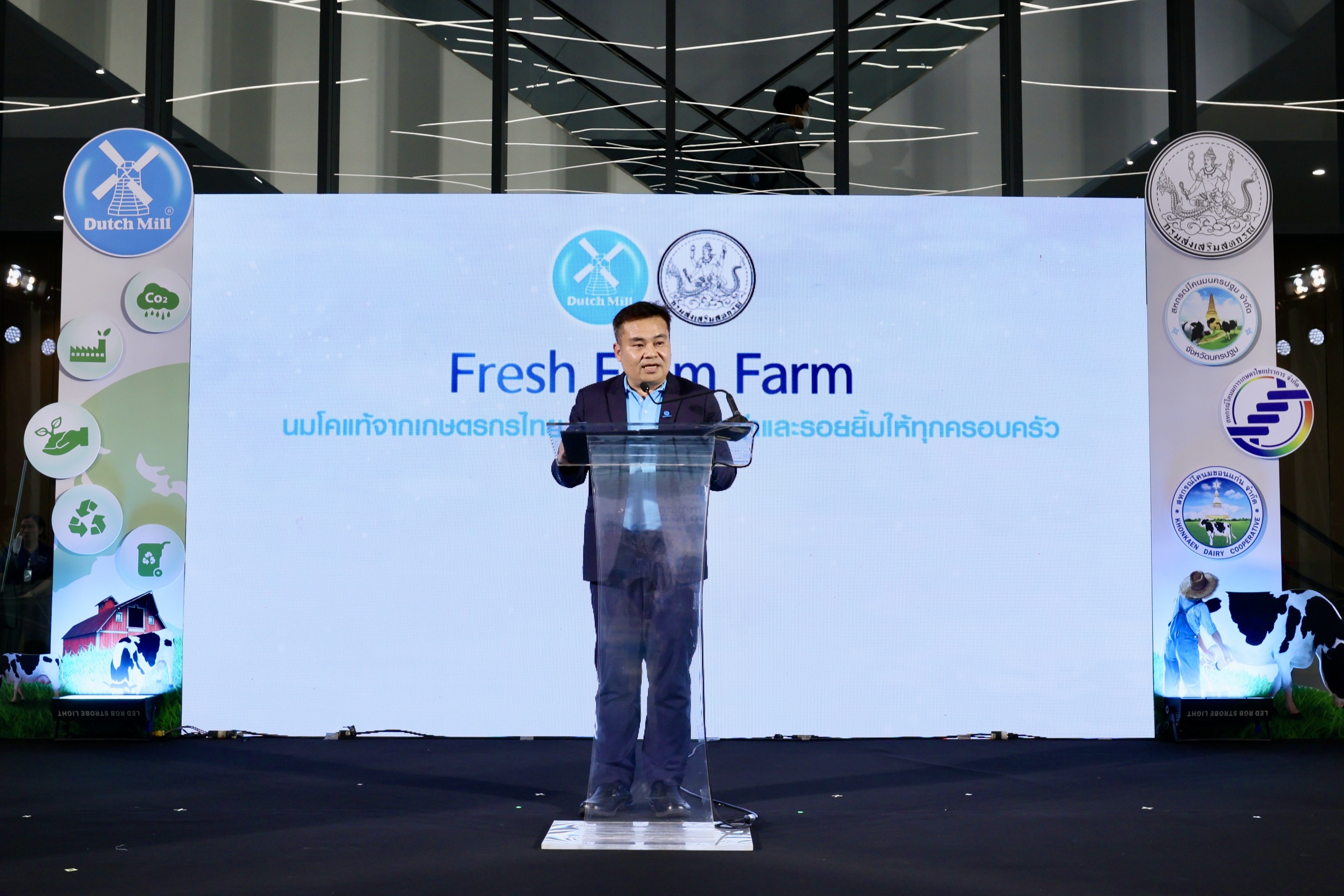 นายวิทยา สายลังกา หัวหน้าฝ่ายองค์กรสัมพันธ์และสื่อสาร บริษัท ดัชมิลล์ จำกัด เผยถึงที่มาของแคมเปญ ว่า FRESH FROM FARM นมโคแท้จากเกษตรกรไทยเพื่อส่งต่อคุณค่าและรอยยิ้มให้ทุกครอบครัว ไม่ใช่เพียงชื่อแคมเปญ แต่เป็นพันธสัญญาว่า นมทุกขวด ที่ออกจากสายการผลิตของดัชมิลล์ ต้องสะท้อนความตั้งใจของเกษตรกรไทย และความใส่ใจของเราในทุกขั้นตอน ภายใต้ความร่วมมือกับกรมส่งเสริมสหกรณ์ เรากำหนดเป้าหมาย 3 ประการที่ชัดเจน 1) ยกระดับมาตรฐานน้ำนมดิบของสหกรณ์โคนมไทยให้ สด สะอาด ปลอดภัย และแข่งขันได้ 2) เสริมความยั่งยืนให้เกษตรกร ผ่านองค์ความรู้ด้านการบริหารต้นทุน การวางแผนอาหารและสุขภาพโคนม การจัดการผลผลิตตามฤดูกาล และ 3) สร้างความเชื่อมโยง จากฟาร์มถึงผู้บริโภค ด้วยการถ่ายทอดเรื่องราวเส้นทางนมคุณภาพของสหกรณ์ไทย สู่กระบวนการผลิตที่ทันสมัยและโปร่งใส ให้ผู้บริโภคมั่นใจว่านมที่อยู่ในมือคือ นมที่สดใหม่ ใส่ใจ และมีที่มา