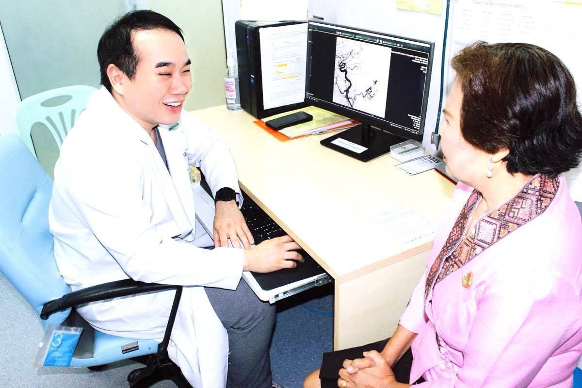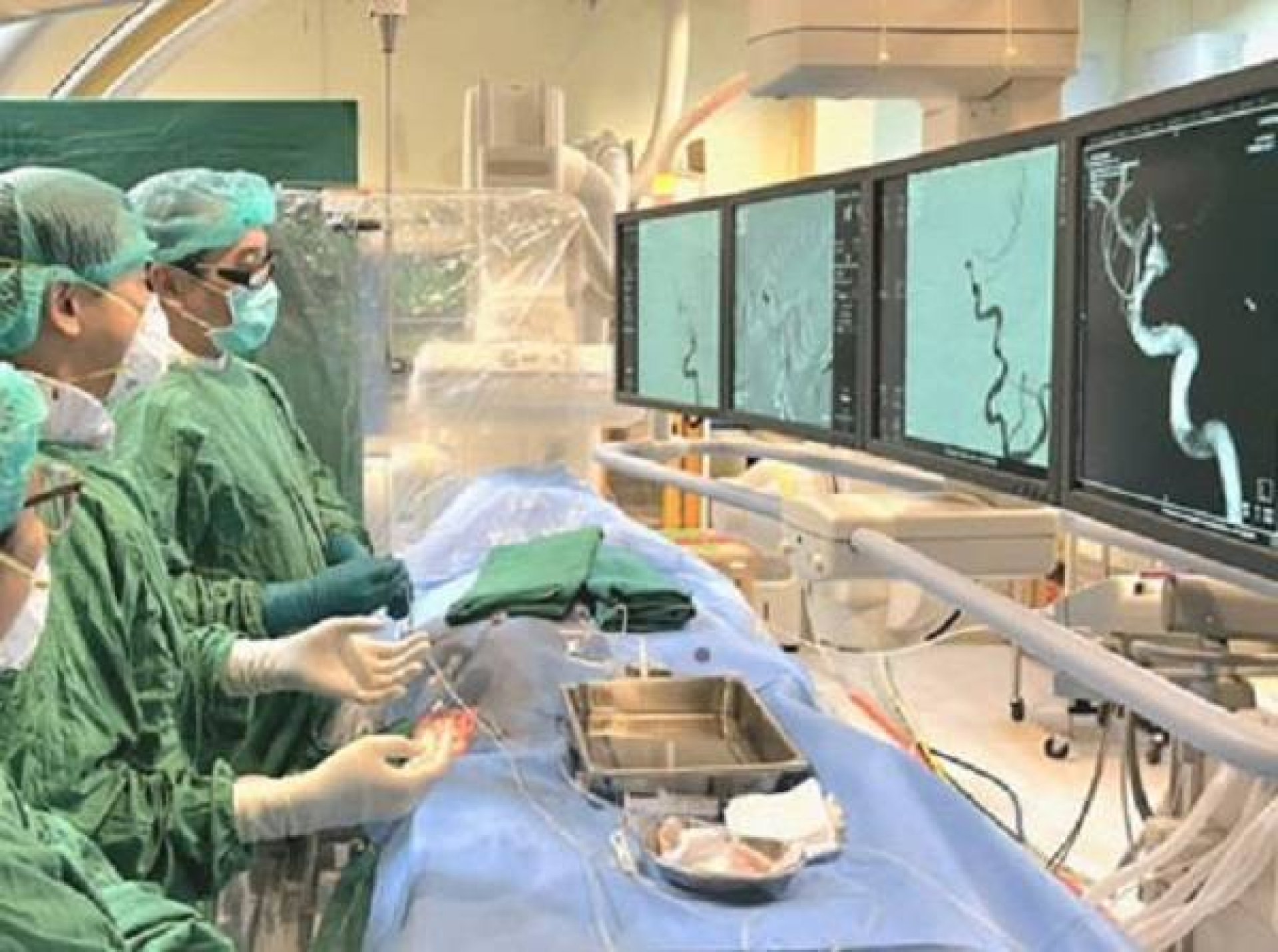 "เราจะใส่สายสวนขนาดเพียง 12 มิลลิเมตร ผ่านหลอดเลือดแดงจากขาหนีบขึ้นไปถึงจุดที่หลอดเลือดผิดปกติในสมอง แล้วอุดจุดนั้นด้วยวัสดุเฉพาะ เพื่อหยุดการไหลเวียนของเลือดที่ผิดปกติ" อ.นพ.ภูมิธรรม อธิบาย