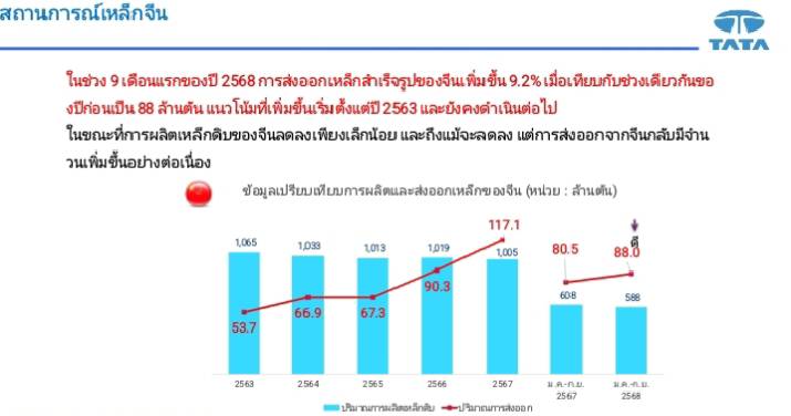 มร. ตารุน ดากา กล่าวเพิ่มเติมว่า ในช่วงครึ่งแรกของปีการเงิน 2569 บริษัทมีผลการดำเนินงานที่ปรับตัวดีขึ้น แม้ว่าจะเป็นการฟื้นตัวหลังจากเผชิญกับความ ท้าทายอย่างหนักเป็นระยะเวลา 2 ปี รวมถึงภาวะความต้องการที่อยู่ในระดับต่ำ สำหรับช่วงระยะเวลา 6 เดือนสิ้นสุดวันที่ 30 กันยายน 2568 ปริมาณการขายของบริษัทได้รับแรงขับเคลื่อนจากยอดขายเหล็กเส้นภายในประเทศที่แข็งแกร่ง และได้รับการสนับสนุนจากนโยบายภาครัฐ เช่น การเบิกจ่ายงบประมาณการลงทุนของภาครัฐที่มีประสิทธิภาพมากขึ้น สำหรับช่วงครึ่งปีหลัง สถานการณ์ความต้องการยังคงขึ้นอยู่กับทิศทางนโยบายของรัฐบาลและการใช้จ่ายเพื่อการลงทุนภาครัฐเป็นหลัก สถานการณ์ความต้องการเหล็กลวดได้รับผลกระทบอย่างรุนแรงจากการนําเข้าในปริมาณมากที่มีราคาต่ำมากซึ่งเกิดขึ้นในประเทศในปัจจุบัน ในขณะเดียวกัน การส่งออกก็เผชิญกับข้อจำกัดจากอุปสรรคด้านภาษีศุลกากรและมาตรการที่ไม่ใช่ภาษีศุลกากรที่ประเทศต่างๆ กำหนดขึ้นเพื่อปกป้องอุตสาหกรรมภายในประเทศของตนเอง