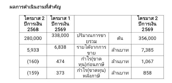 บริษัท ทาทา สตีล (ประเทศไทย) จำกัด (มหาชน) เปิดเผยผลการดำเนินงานไตรมาส สิ้นสุดวันที่ 30 กันยายน 2568 เมื่อวันที่ 17 ตุลาคม 2568 บริษัทได้รายงานผลกำไรก่อนหักภาษีเงินได้ 1,067 ล้านบาท สำหรับไตรมาสเดือนกรกฎาคม - กันยายน 2568 เมื่อเทียบกับกำไร 474 ล้านบาทในไตรมาสเดือนเมษายน - มิถุนายน 2568 และขาดทุน 160 ล้านบาทในไตรมาสเดือนกรกฎาคม - กันยายน 2567