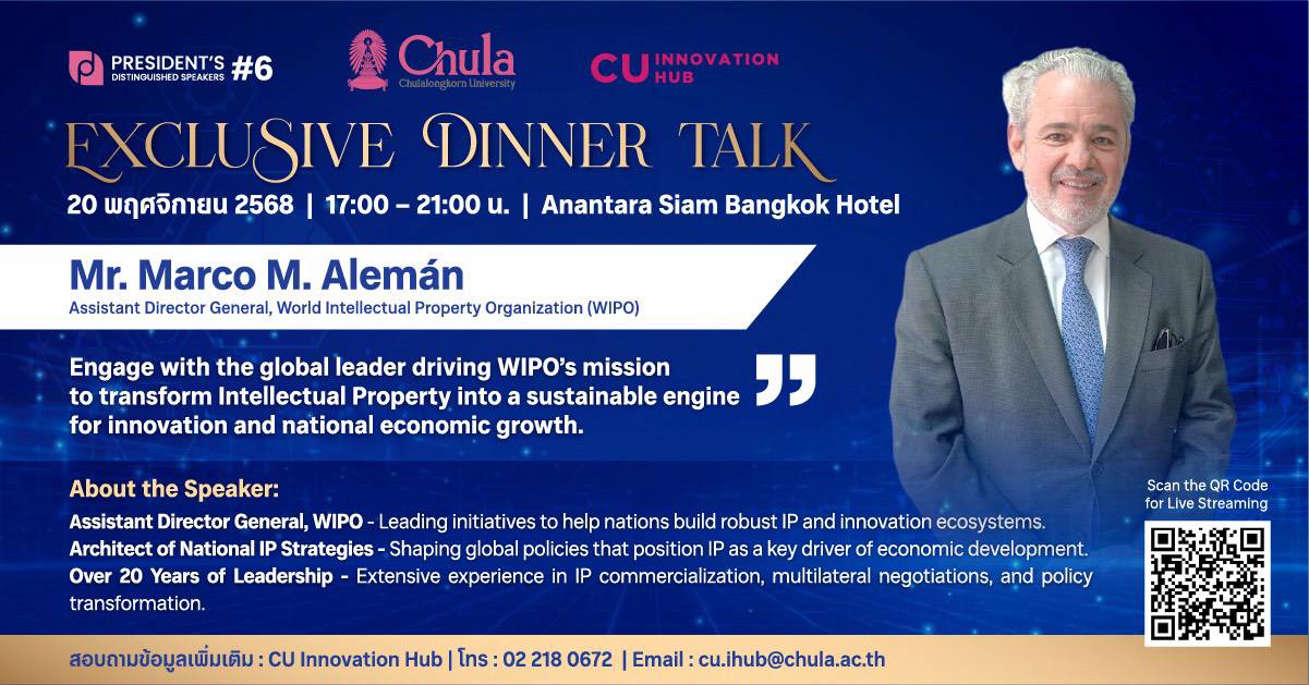จุฬาฯ ชวนเปิดมุมมองผู้นำระดับโลก ด้านนวัตกรรมและทรัพย์สินทางปัญญา ในงาน “President's Distinguished Speaker #6”