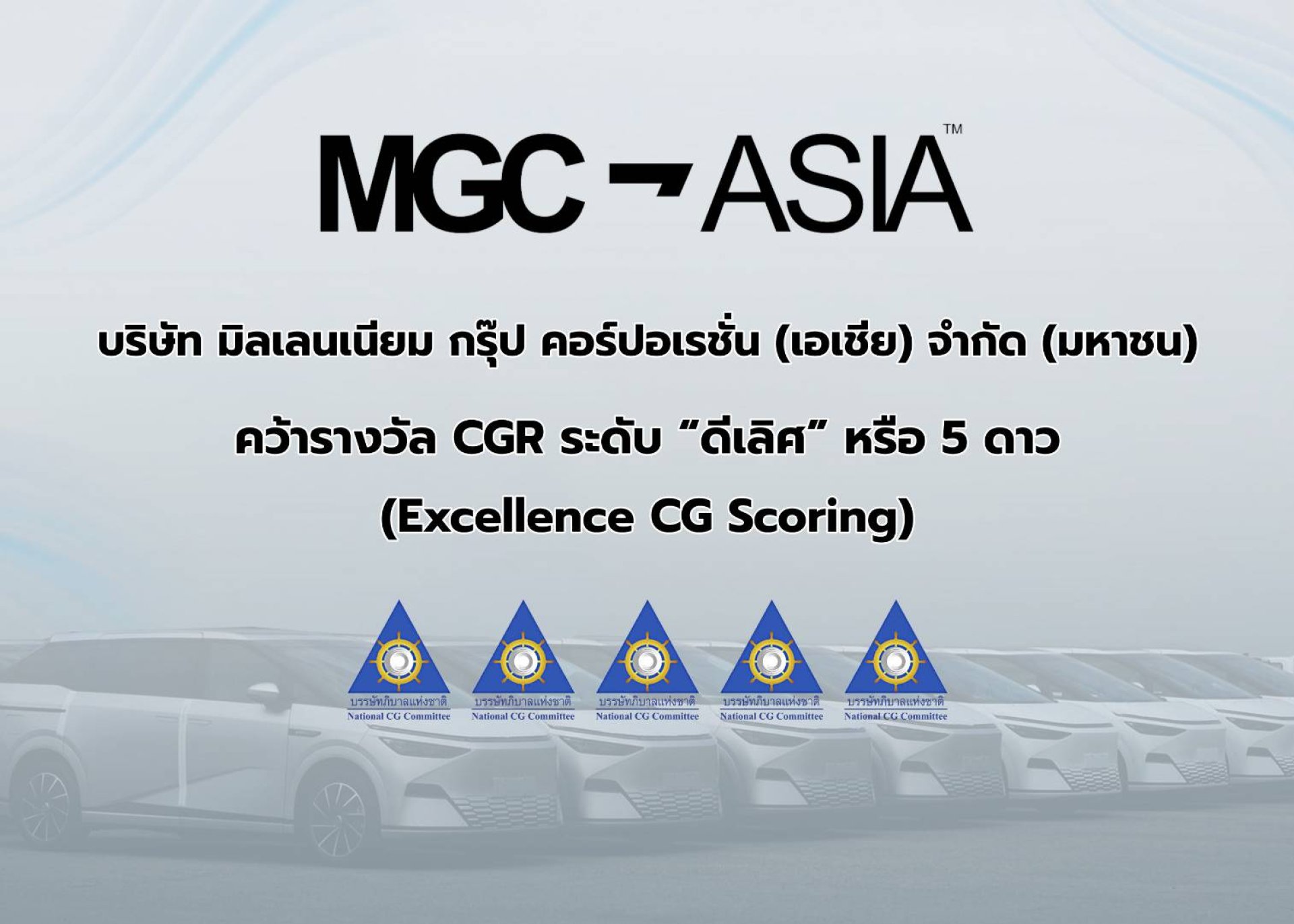 บริษัท มิลเลนเนียม กรุ๊ป คอร์ปอเรชั่น (เอเชีย) จำกัด (มหาชน) หรือ MGC-ASIA ได้รับการประเมินในระดับ ดีเลิศ (Excellent CG Scoring) หรือ 5 ดาว และติดอันดับอยู่ใน Top Quartile ของบริษัทจดทะเบียนที่มีมูลค่าหลักทรัพย์ตามราคาตลาด (Market Capitalization) ที่ 10,001-30,000 ล้านบาท จากโครงการ สำรวจการกำกับดูแลกิจการบริษัทจดทะเบียนไทย (Corporate Governance Report: CGR) ประจำปี 2568 (CGR 2025) จัดโดย สมาคมส่งเสริมสถาบันกรรมการบริษัทไทย (IOD) ภายใต้การสนับสนุนของ ตลาดหลักทรัพย์แห่งประเทศไทย (ตลท.) และ สำนักงานคณะกรรมการกำกับหลักทรัพย์และตลาดหลักทรัพย์ (ก.ล.ต.) โดยในปีนี้มีบริษัทจดทะเบียนเข้าร่วมการประเมินทั้งสิ้น 844 บริษัท