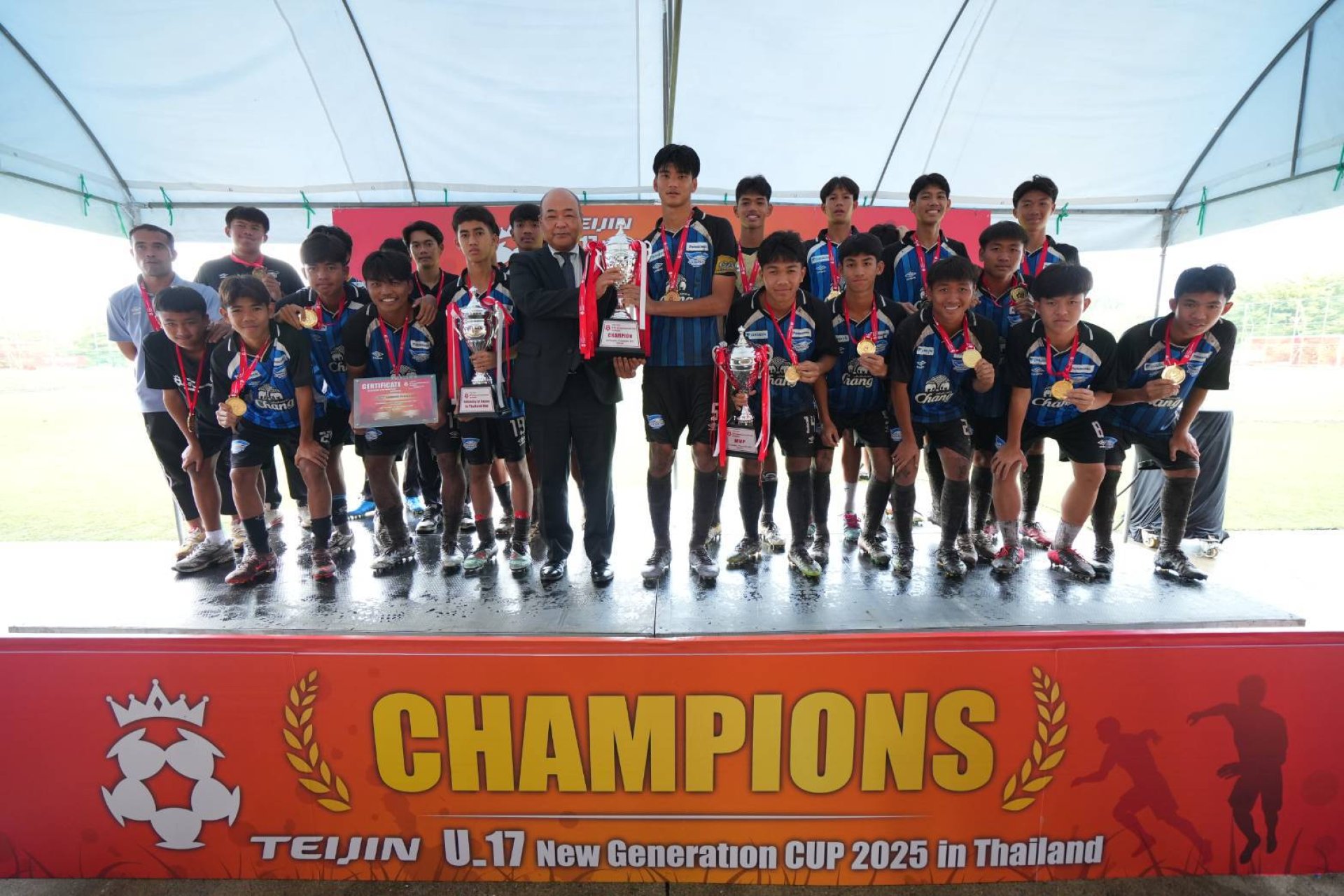 ศึกฟุตบอลเยาวชนนานาชาติ "TEIJIN U-17 New Generation Cup 2025 ประเทศไทย" (เทยิน ยู-17 นิว เจเนอเรชัน คัพ 2025 ประเทศไทย) ปิดฉากลงอย่างเร้าใจ เมื่อทีม "ท่าข้าม ชลบุรี เอฟซี" โชว์ฟอร์มเด่นเฉือนเอาชนะ "พีวีเอฟ เวียดนาม" ไปอย่างสุดมันส์ด้วยสกอร์ 2 1 ในช่วงต่อเวลาพิเศษ คว้าแชมป์ไปครองท่ามกลางเสียงเชียร์กระหึ่ม ณ ธนบุรี สเตเดี้ยม