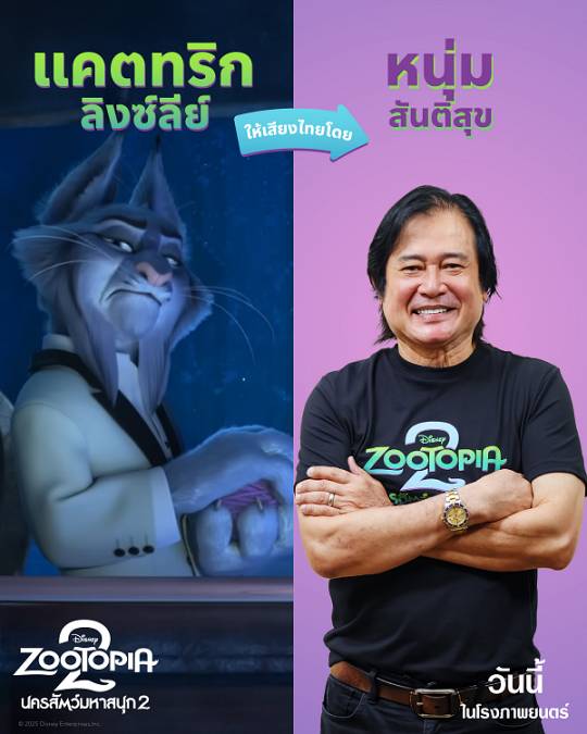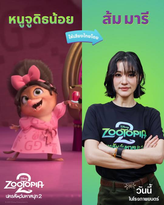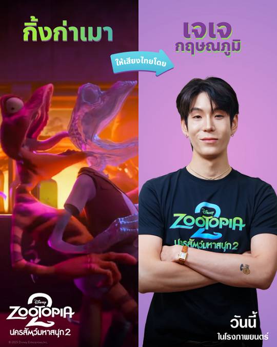 หลังจากปล่อยให้แฟน ๆ ลุ้นและเดากันไปก่อนหน้านี้ ในที่สุดก็ถึงเวลาคลายสงสัย เมื่อ Disneys Zootopia 2 นครสัตว์มหาสนุก 2 ออกมาเฉลยแล้วว่า 7 ศิลปินนักแสดงที่มาร่วมเป็นนักพากย์คนพิเศษ ทั้ง เจเจ-กฤษณภูมิ พิบูลสงคราม, ส้ม-มารี เออเจนี เลอเลย์, ธามไท แพลงศิลป์, หญิง-รฐา โพธิ์งาม, แก้ม-วิชญาณี เปียกลิ่น, โดม-จารุวัฒน์ เชี่ยวอร่าม และ หนุ่ม-สันติสุข พรหมศิริ แต่ละคนให้เสียงไทยเป็นตัวละครไหนในเรื่องกันบ้าง งานนี้บอกเลยว่า เซอร์ไพรส์ยิ่งกว่าตอนเปิดตัวเสียอีก