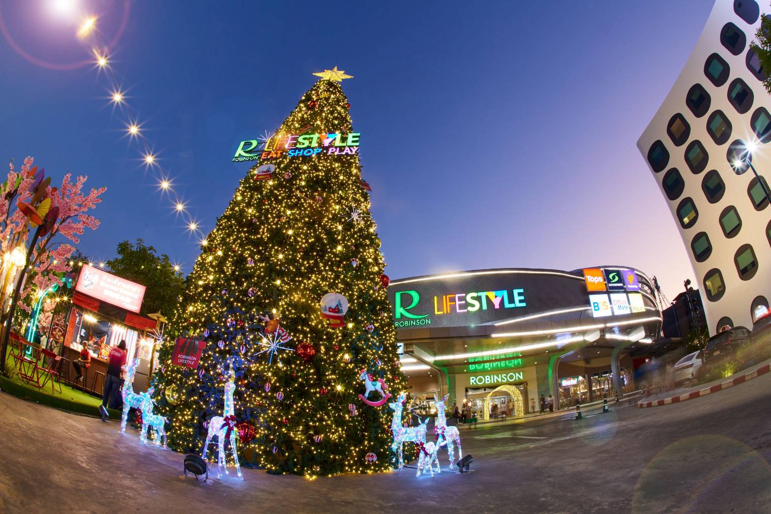 ภายใต้ธีม "The Merry City by Robinson Lifestyle" แลนด์มาร์กแห่งความสุขทั่วประเทศส่งท้ายปี โรบินสันไลฟ์สไตล์ทั้ง 27 สาขาทั่วประเทศ ได้ร่วมกันยกระดับบรรยากาศเทศกาลให้สวยงามตระการตายิ่งกว่าเดิม ด้วยการตกแต่งพื้นที่ที่โดดเด่นตั้งแต่โซนด้านนอกศูนย์ไปจนถึงพื้นที่ภายใน อาทิ The Merry Christmas Tree ต้นคริสต์มาสประดับไฟสูงกว่า 12 เมตร ถูกออกแบบให้กลายเป็นจุดต้อนรับสุดอลังการ พร้อมของตกแต่งสีสันสดใสในธีม The Merry City เช่น รถไฟของซานต้า ของเล่น และลูกบอลประดับหลากสี ช่วยสร้างบรรยากาศความสุขตั้งแต่ก้าวแรกที่เดินเข้าสู่ศูนย์การค้าฯ The Merry Tunnel อุโมงค์ไฟ (Light Tunnel) แลนด์มาร์กสุดฮิตสำหรับการถ่ายภาพในยามค่ำคืน มีการประดับประดาไฟบนต้นไม้ ด้วย ไฟหยดน้ำระยิบระยับ เพิ่มความสว่างไสวในยามค่ำคืน