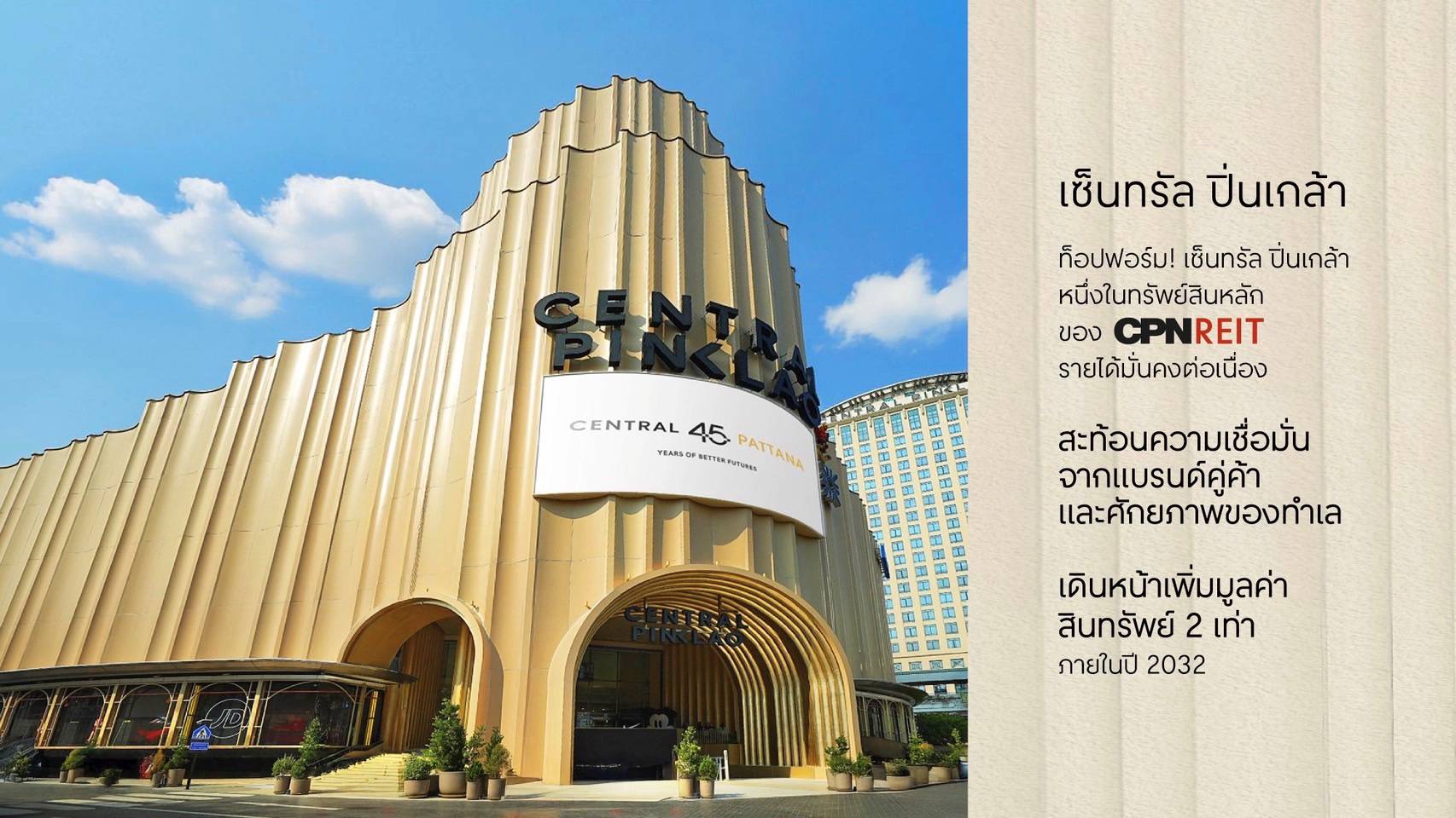 เซ็นทรัล ปิ่นเกล้า แรงขับเคลื่อนสำคัญที่สร้างรายได้มั่นคง และเสริมศักยภาพการเติบโตให้กับ CPNREIT ในระยะยาว เพื่อตอกย้ำความเป็นกอง REIT ชั้นนำในระดับภูมิภาค สะท้อนความเชื่อมั่นจากแบรนด์คู่ค้าและศักยภาพของทำเล ดึง Magnet Brands ต่อเนื่อง เพื่อตอบโจทย์กลุ่มลูกค้ากำลังซื้อสูง ซึ่งถือเป็นรากฐานที่สำคัญ ที่จะช่วยสนับสนุนการขับเคลื่อนยุทธศาสตร์การเติบโตแบบก้าวกระโดดของ CPNREIT ที่มุ่งเน้นการเพิ่มศูนย์การค้าศักยภาพสูงอย่างต่อเนื่อง ตั้งเป้าเพิ่มมูลค่าสินทรัพย์ 2 เท่าภายในปี 2032 เพื่อสร้างผลตอบแทนที่ยั่งยืนและมั่นคงให้กับผู้ถือหน่วยทรัสต์ในระยะยาว