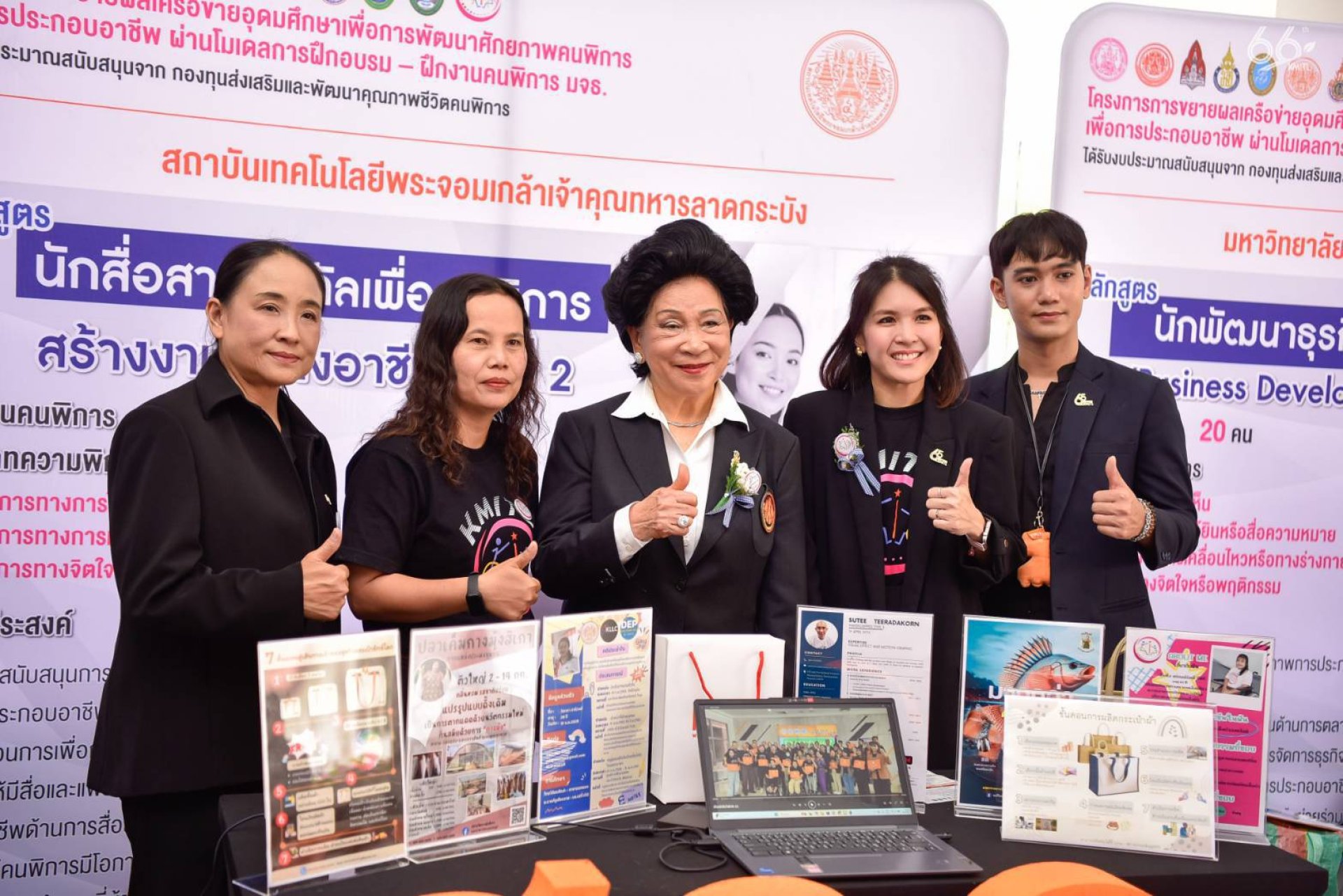 สถาบันเทคโนโลยีพระจอมเกล้าเจ้าคุณทหารลาดกระบัง (สจล.) โดย ดร.สุมาลี อุทัยเฉลิม กรรมการสภาสถาบันผู้ทรงคุณวุฒิ และ ผู้ช่วยศาสตราจารย์ ดร.ทอแสงรัศมี ถีถะแก้ว ผู้ช่วยอธิการบดีฝ่ายสื่อสารองค์กร ในฐานะหัวหน้าโครงการอบรมคนพิการ เข้าร่วมการแถลงข่าวเปิดตัว “โครงการการขยายผลเครือข่ายอุดมศึกษาเพื่อการพัฒนาศักยภาพคนพิการเพื่อการประกอบอาชีพ ผ่านโมเดลการฝึกอบรม - ฝึกงาน คนพิการ มจธ.”