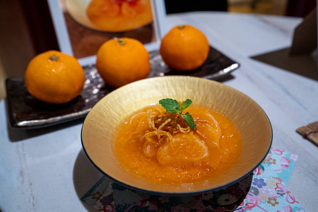 5. Nanki Mikan Trio เติมความสดชื่นปิดท้ายมื้ออาหารด้วยรสชาติหวานอมเปรี้ยวชุ่มฉ่ำอันเป็นเอกลักษณ์ของ “ส้มนันคิ” ผลไม้ขึ้นชื่อของจังหวัดมิเอะ ที่ปลูกบนภูเขาที่หันหน้ารับลมทะเลและอุดมด้วยแร่ธาตุตามธรรมชาติ จึงให้รสชาติหวานฉ่ำเข้มข้นเป็นพิเศษในช่วงฤดูหนาว (ช่วงเดือนธันวาคม - มกราคม) โดยนำมารังสรรค์เป็นเมนูของหวานที่มีเนื้อส้ม 3 สไตล์ในจานเดียว