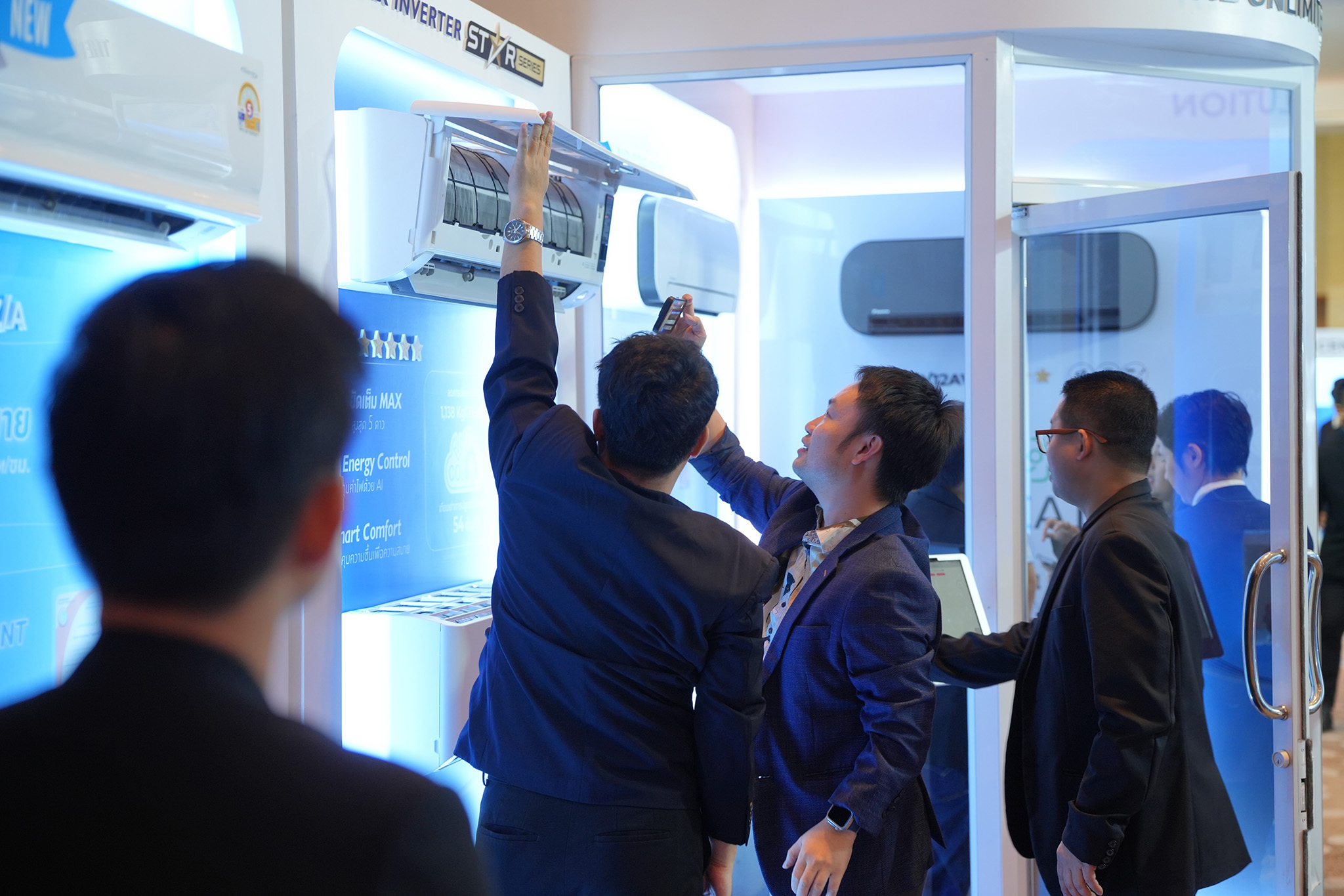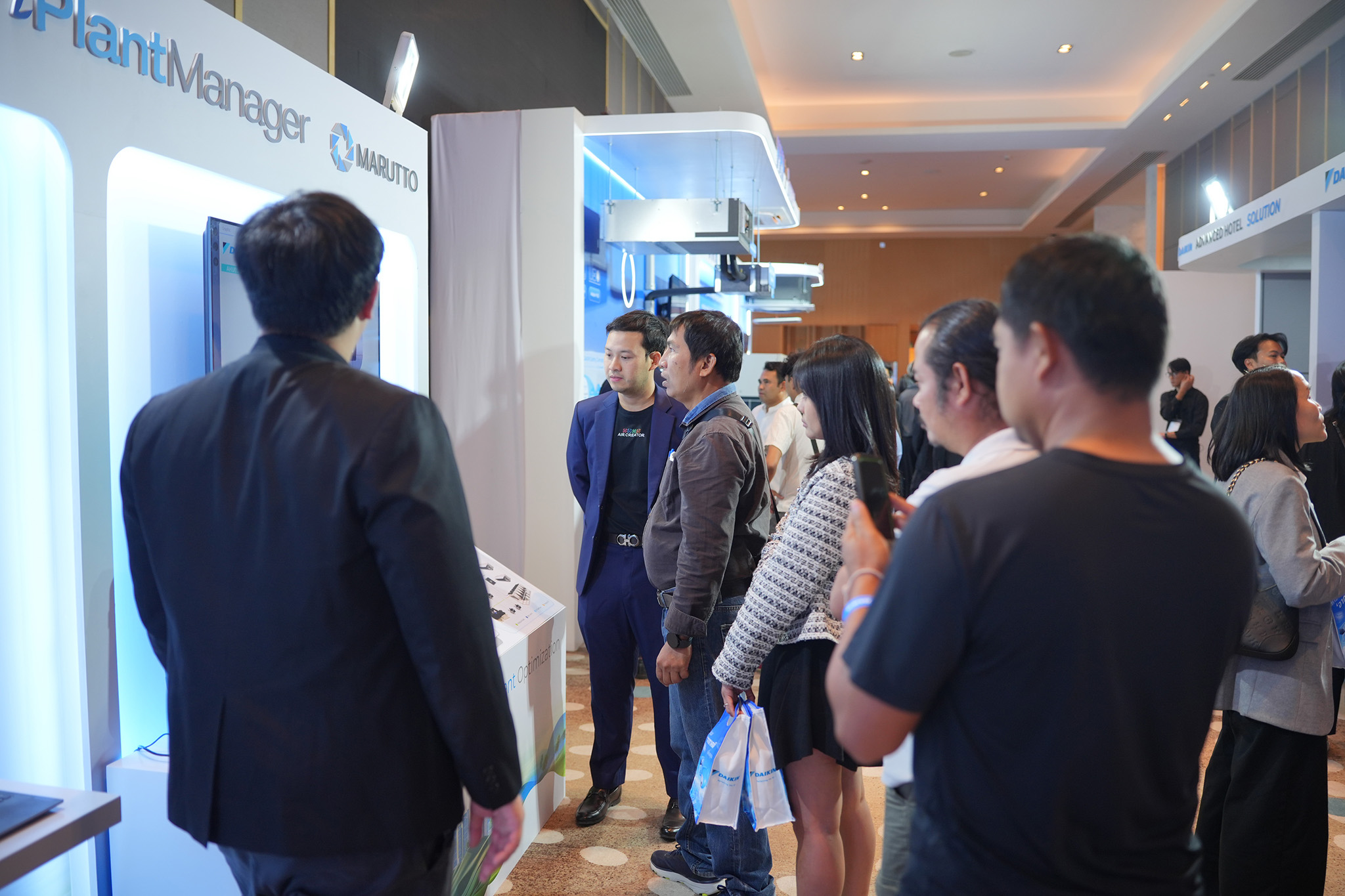 สำหรับกลุ่มเครื่องปรับอากาศขนาดใหญ่ ไดกิ้นนำเสนอ Marutto P Series โซลูชันบริหารอาคารแบบครบวงจร ที่ครอบคลุมทั้งระบบปรับอากาศ การจัดการพลังงาน ระบบส่องสว่าง ระบบรักษาความปลอดภัย และระบบสาธารณูปโภคต่าง ๆขณะเดียวกัน ไดกิ้นยังพัฒนาโซลูชันสำหรับ Data Center เพื่อตอบรับการเติบโตของเทคโนโลยี AI โดยเฉพาะ ประกอบด้วยเครื่องทำน้ำเย็นและระบบส่งลมเย็นสำหรับเซิร์ฟเวอร์ ที่เน้นเสถียรภาพสูงและการใช้พลังงานอย่างมีประสิทธิภาพ เพื่อสนับสนุนการเติบโตอย่างยั่งยืนในอนาคต