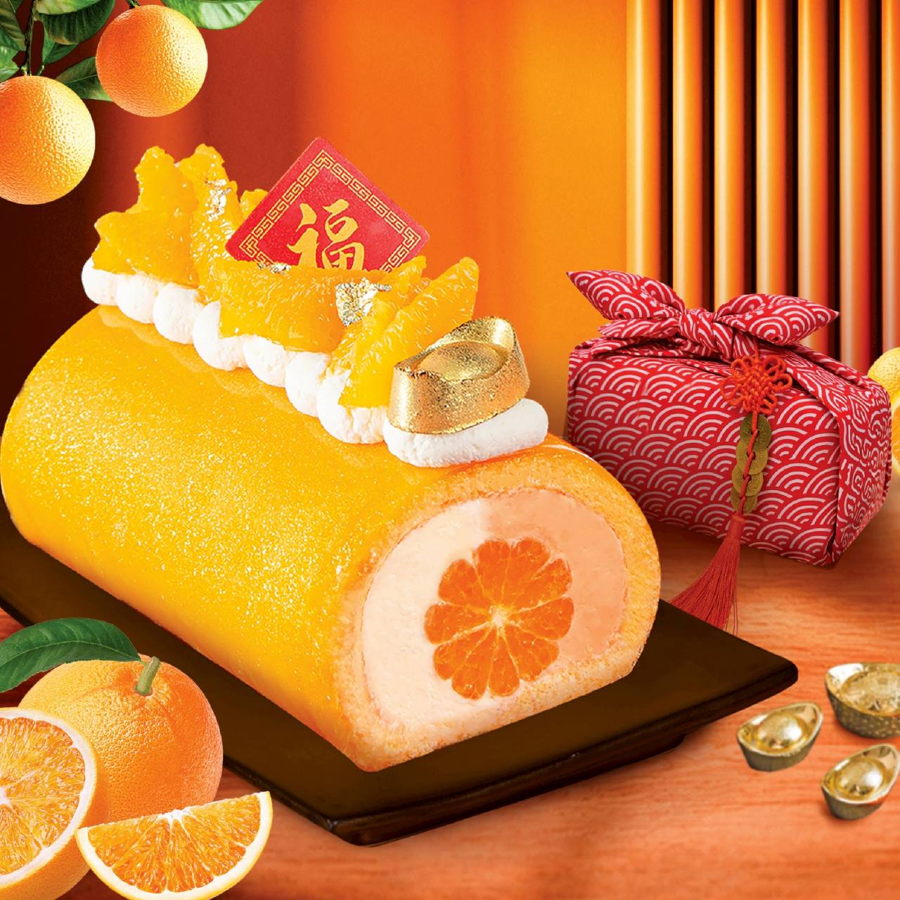 เริ่มต้นด้วยเมนูยอดนิยม Emperor Orange Roll โรลเค้กส้มสุดพรีเมียมที่รวบรวมส้ม 3 สายพันธุ์ 3 สัญชาติ ได้แก่ ส้ม “มิกัน” จากญี่ปุ่น, ส้ม “ซาถังจักรพรรดิ” จากไต้หวัน และส้ม “ซันคิสท์” จากสหรัฐอเมริกา ภายในอัดแน่นด้วยผลส้มซาถังจักรพรรดิไร้เมล็ดกว่า 5 ลูก สอดไส้ดับเบิ้ลครีมสด 2 สี ตกแต่งด้วยช็อกโกแลตทองคำทานได้ บรรจุในแพ็กเกจพร้อม “ยกส้ม” รับตรุษจีน ในราคาเพียง 999 บาท