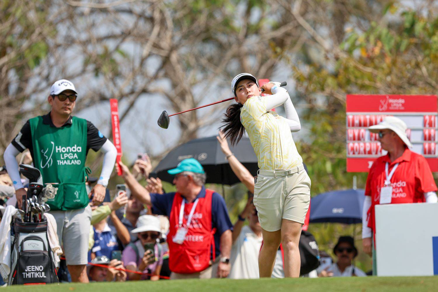 เมียว-ปาจรีย์ อนันต์นฤการ มือ 49 ของโลก ทำ 5 อันเดอร์พาร์ 67 รวม 13 อันเดอร์พาร์ 275 (68-72-68-67) เท่ากับ พราว ชเนตตี วรรณแสน มือ 56 ของโลก ที่ทำ 1 อันเดอร์พาร์ 71 รวม 275 (65-71-68-71) อยู่อันดับ 18 ร่วม