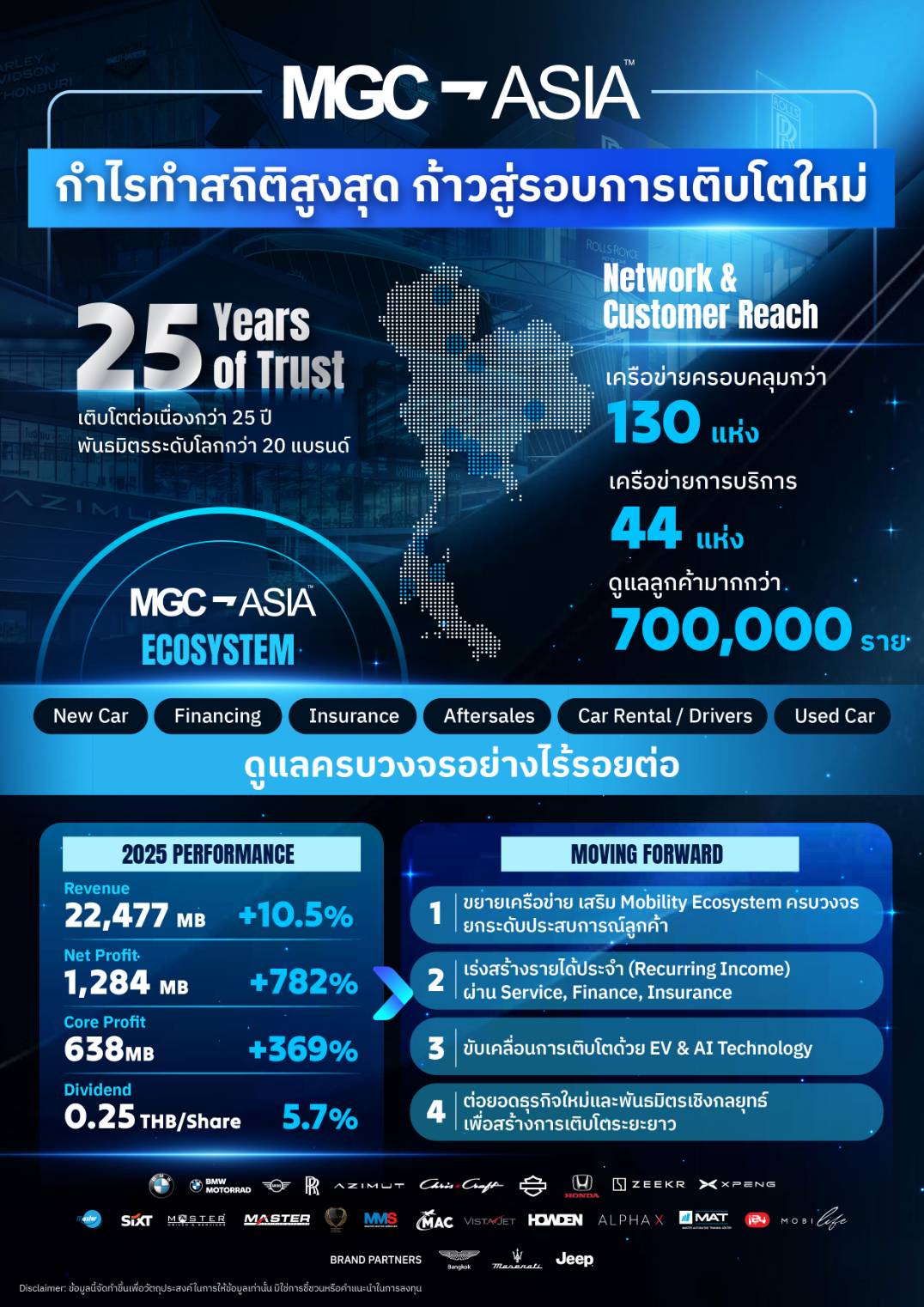 MGC-ASIA แถลงผลการดำเนินงานปี 2568 ทำสถิติกำไรสูงสุดใหม่ ผลจากความแข็งแกร่งของโครงสร้างธุรกิจระบบนิเวศ Mobility Ecosystem