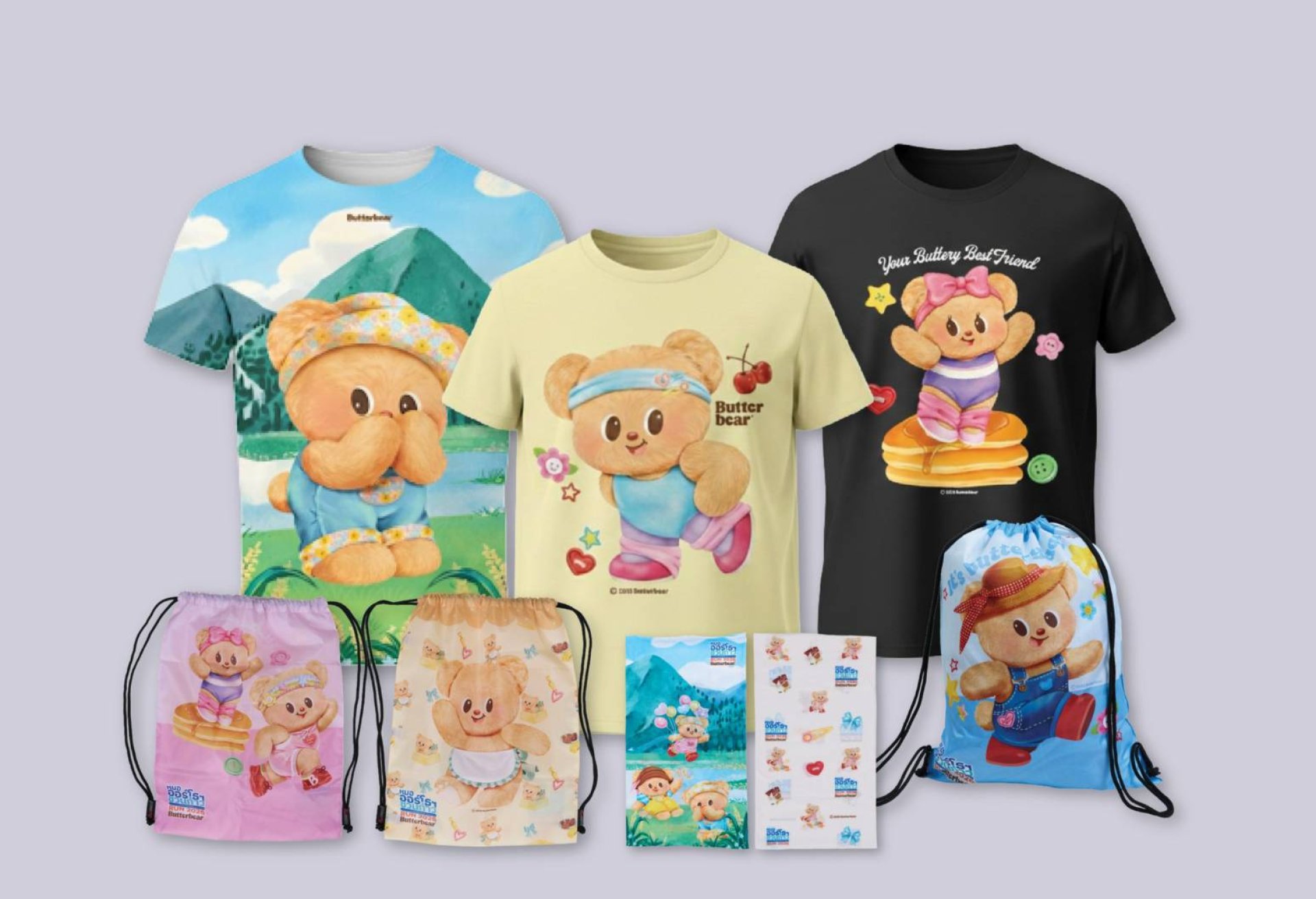 2. กระเป๋าเป้หูรูด (Goody Bag Butterbear) กระเป๋าเอนกประสงค์ น้ำหนักเบา พกพาสะดวก มีให้เลือก 3 สี คือ สีชมพู, สีฟ้า และสีครีม ราคาใบละ 290 บาท
