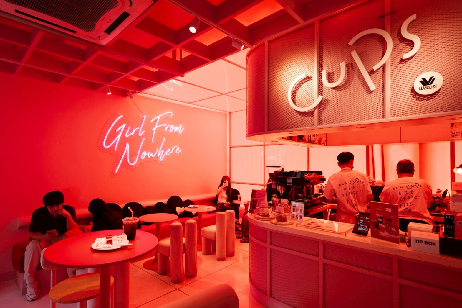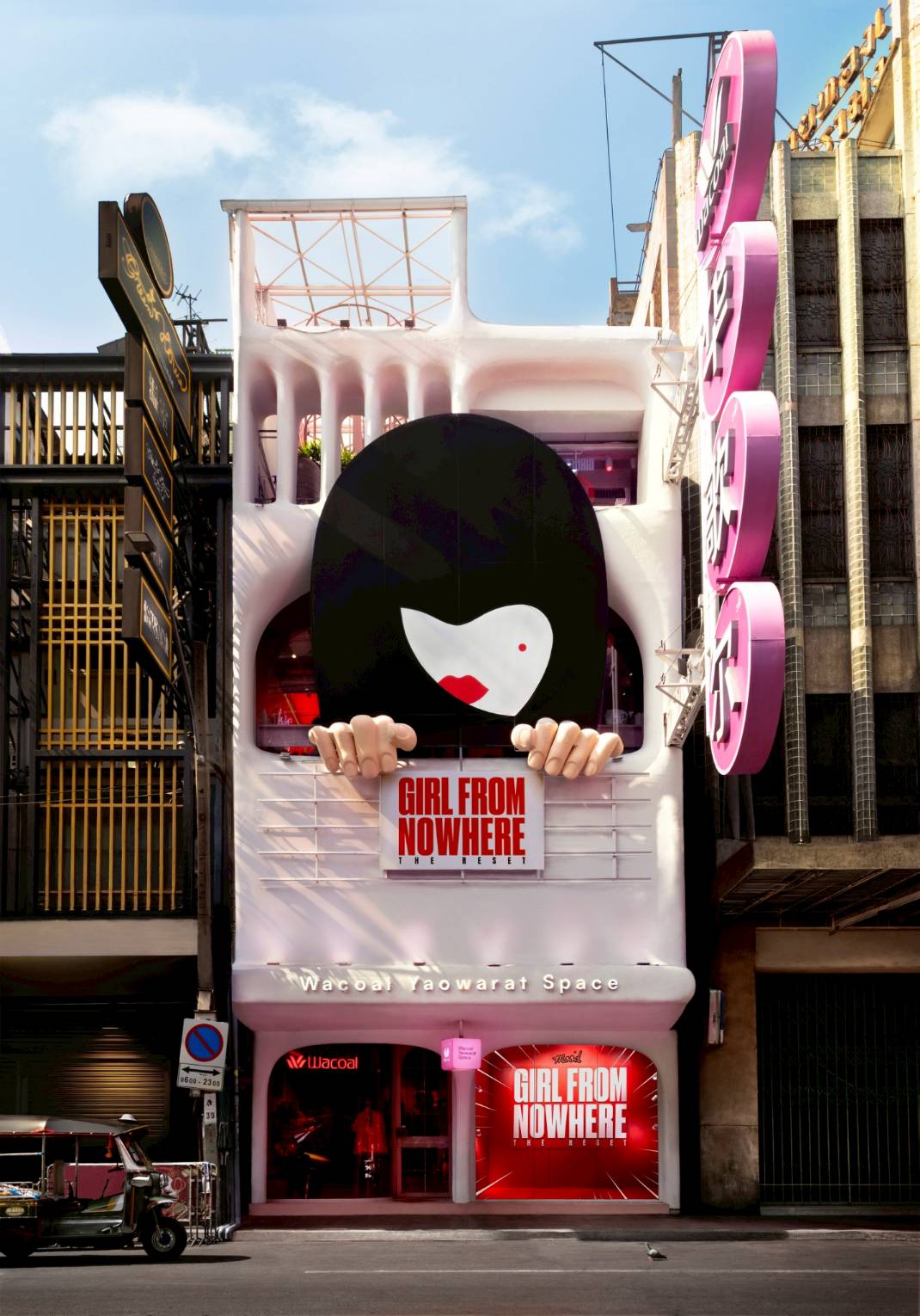 อีกหนึ่งไฮไลต์สำคัญของคอลเลกชัน คือการเนรมิต “Wacoal Yaowarat Space” ให้เป็นพื้นที่ประสบการณ์แบรนด์ในธีมเดียวกับซีรีส์ เพื่อให้แฟนๆ ได้สัมผัสบรรยากาศของ Girl From Nowhere ในโลกจริง ตัวอาคารถูกตกแต่งด้วยโทนสีแดงที่สะท้อนความลึกลับและน่าค้นหา ภายในยังมี Cups Café ที่เสิร์ฟเมนูเครื่องดื่มและเบเกอรีธีมพิเศษ เช่น