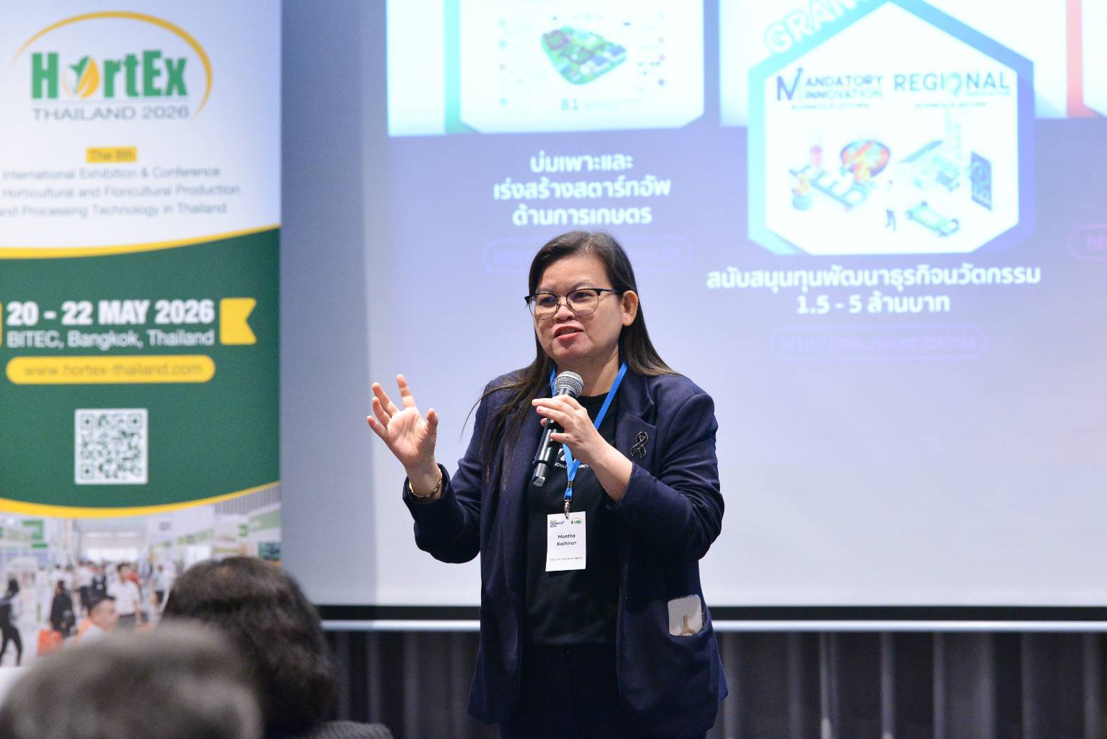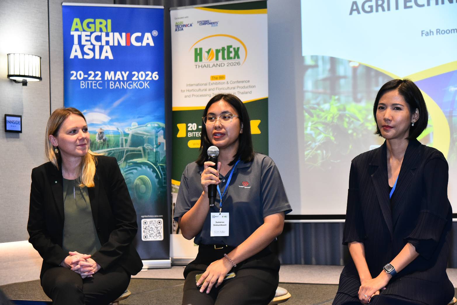 คุณมณฑา ไก่หิรัญ ผู้อำนวยการฝ่ายส่งเสริมการสร้างสตาร์ทอัพ เน้นว่า AGRITECHNICA ASIA and HortEx 2026 คือ “ห้องปฏิบัติการจริง” สำหรับผู้ประกอบการสตาร์ทอัพด้านเกษตร ผ่านโครงการ AGROWTH Accelerator ที่บ่มเพาะสตาร์ทอัพไปแล้วมากกว่า 40 รายใน 5 รุ่น ดึงดูดเงินลงทุน 134 ล้านบาท และผ่าน AgTech CONNEXT ที่เชื่อมต่อเกษตรกรกว่า 3,000 รายใน 27 จังหวัด ช่วยเพิ่มรายได้เกษตรกรถึง 26%