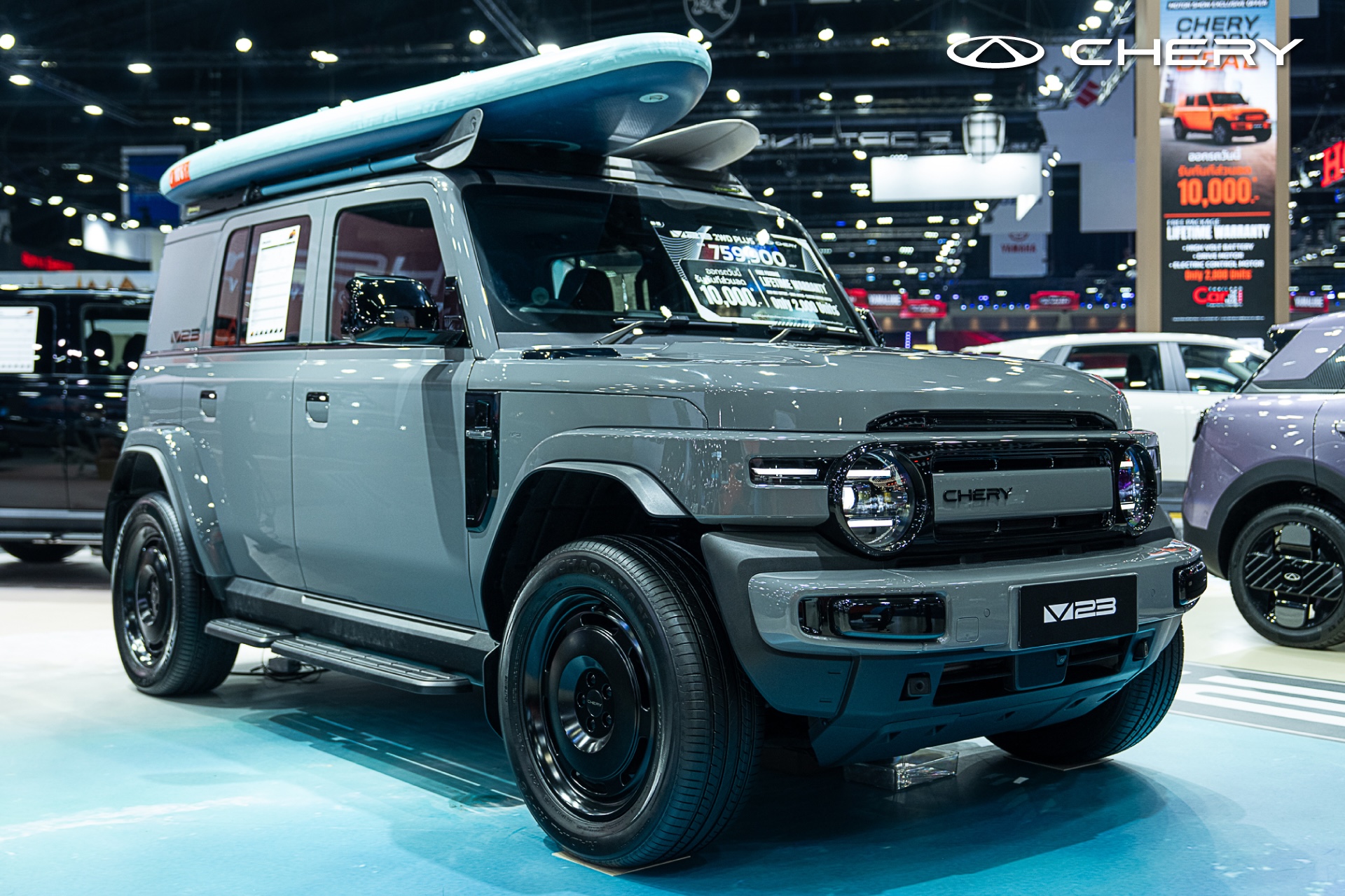 ความสำเร็จของ CHERY ครั้งนี้มาจากการนำเสนอรถพลังงานทางเลือกหลากหลายรุ่นและตอบโจทย์ลูกค้าในทุกกลุ่ม โดยเฉพาะ Chery V23 รถไฟฟ้าดีไซน์ Boxy เอกลักษณ์เฉพาะตัว ก็ยังคงมาแรงอย่างต่อเนื่องในกลุ่มคนรุ่นใหม่ ทั้งยังได้เผยโฉม 2 สีใหม่อย่าง Latte Gray และ Pop Purple ภายในงานมอเตอร์โชว์