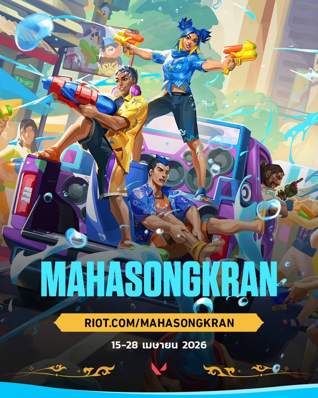 เตรียมตัวให้พร้อม แล้วมาสาดความมันส์ไปด้วยกันใน VALORANT Maha Songkran 2026 ตั้งแต่วันที่ 12 – 15 เมษายนนี้ ที่สยามสแควร์ ซอย 2 ติดตามรายละเอียดเพิ่มเติมของแคมเปญ VALORANT Maha Songkran 2026 ได้ผ่านช่องทางอย่างเป็นทางการของ VALORANT Thailand